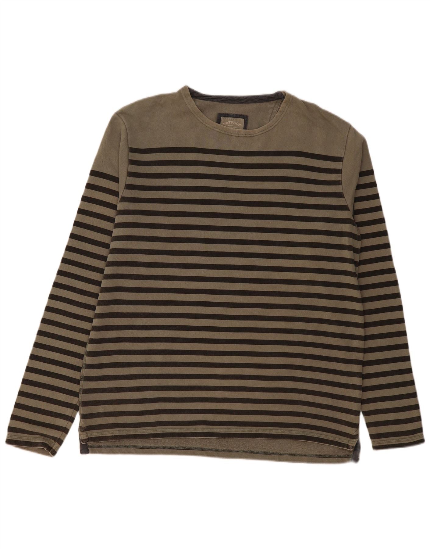 FAT FACE Herre Top Langærmet Stor Khaki Stribet Bomuld