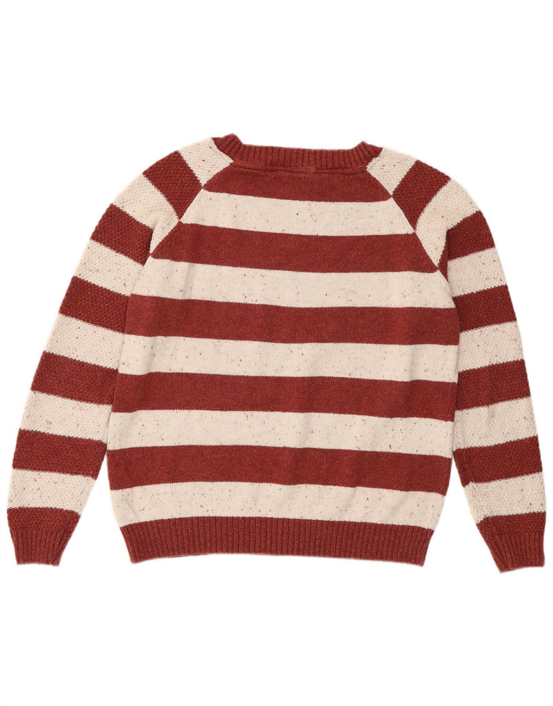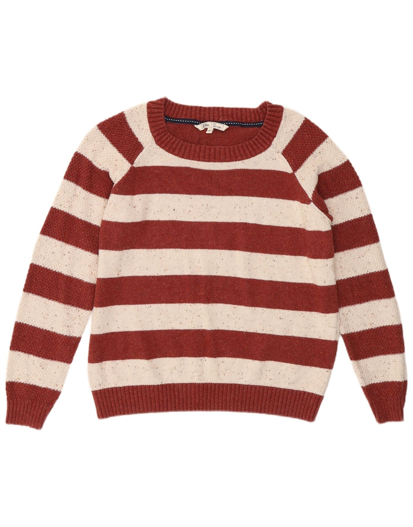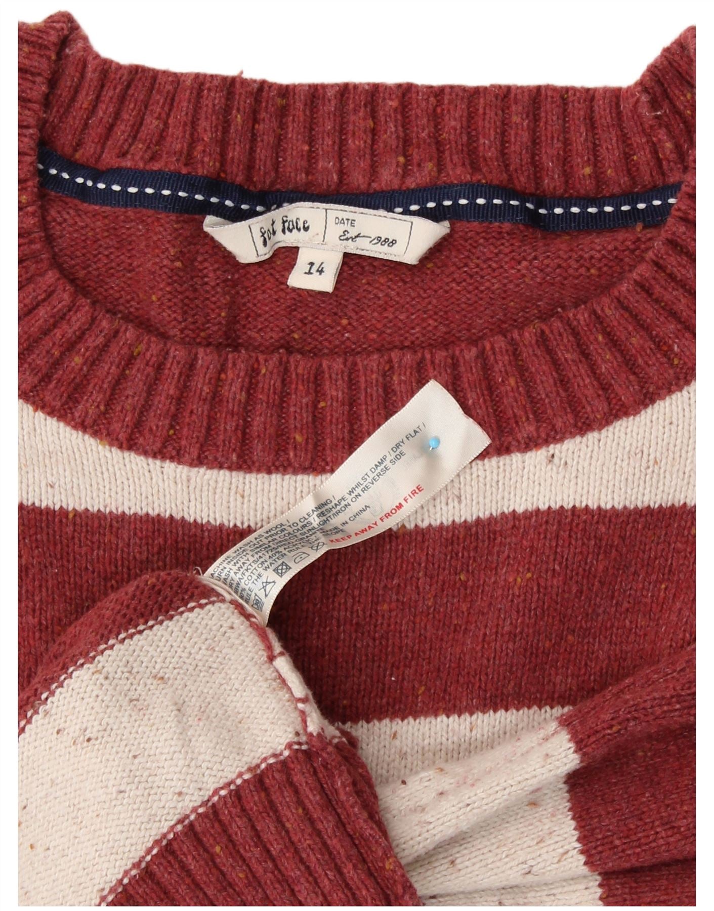 FAT FACE Womens Boat Neck Jumper Sweater UK 14 Large Burgundy Striped