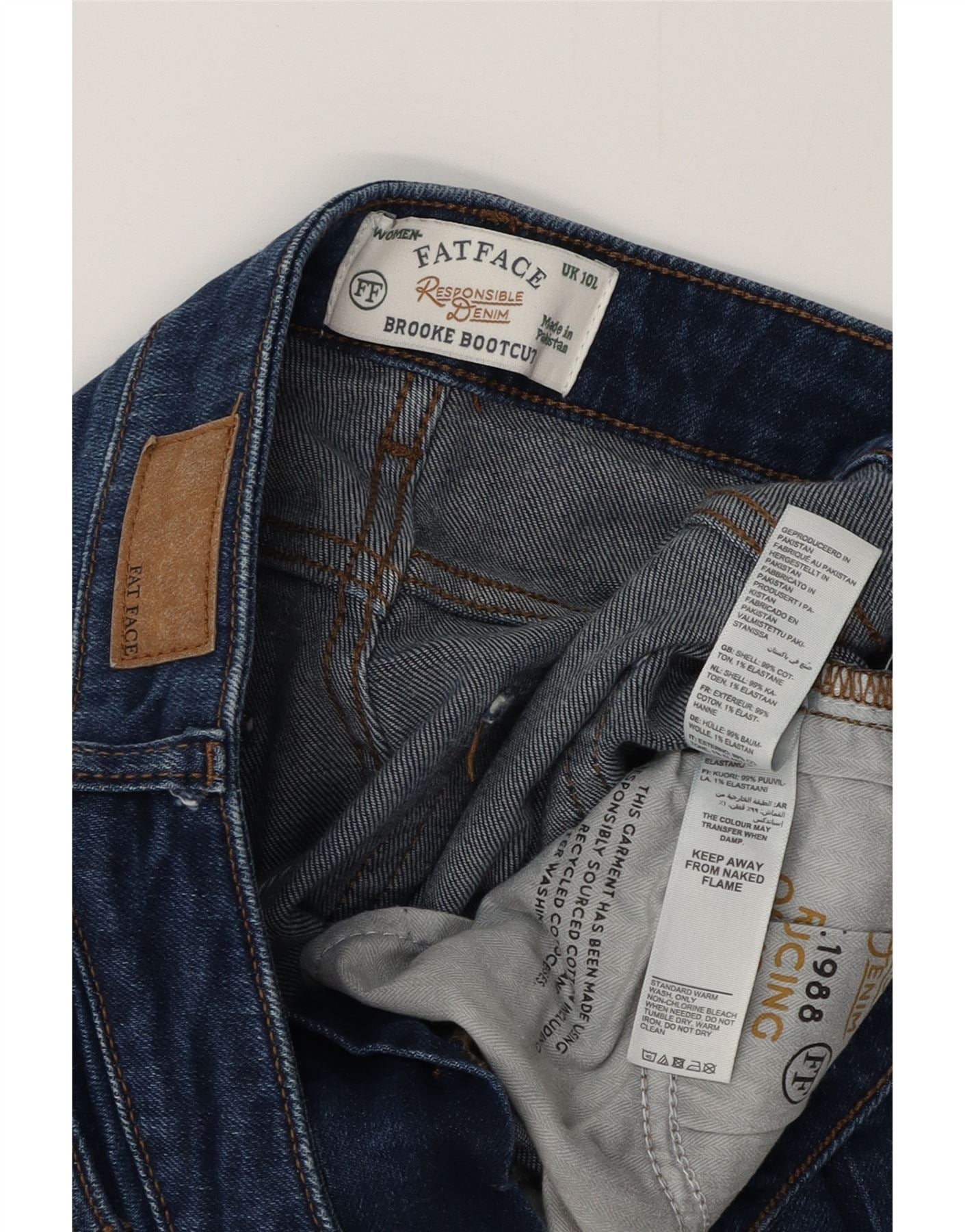 Fat Face Dame Bootcut Jeans UK 10 Small W30 L32 Navy Blue Bomuld