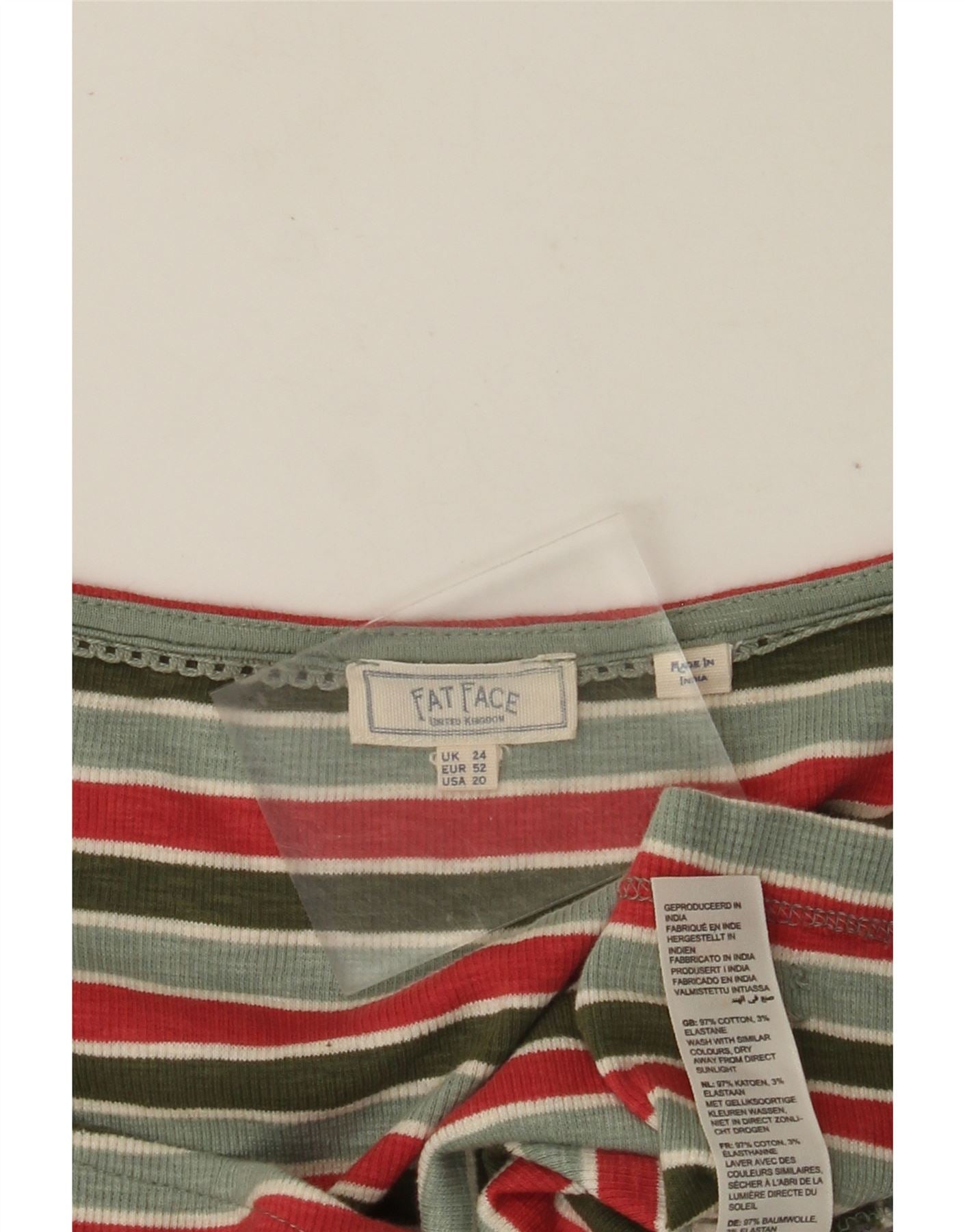 Fat Face Dame Crop Shirt Bluse UK 24 4XL Grøn Stribet Bomuld