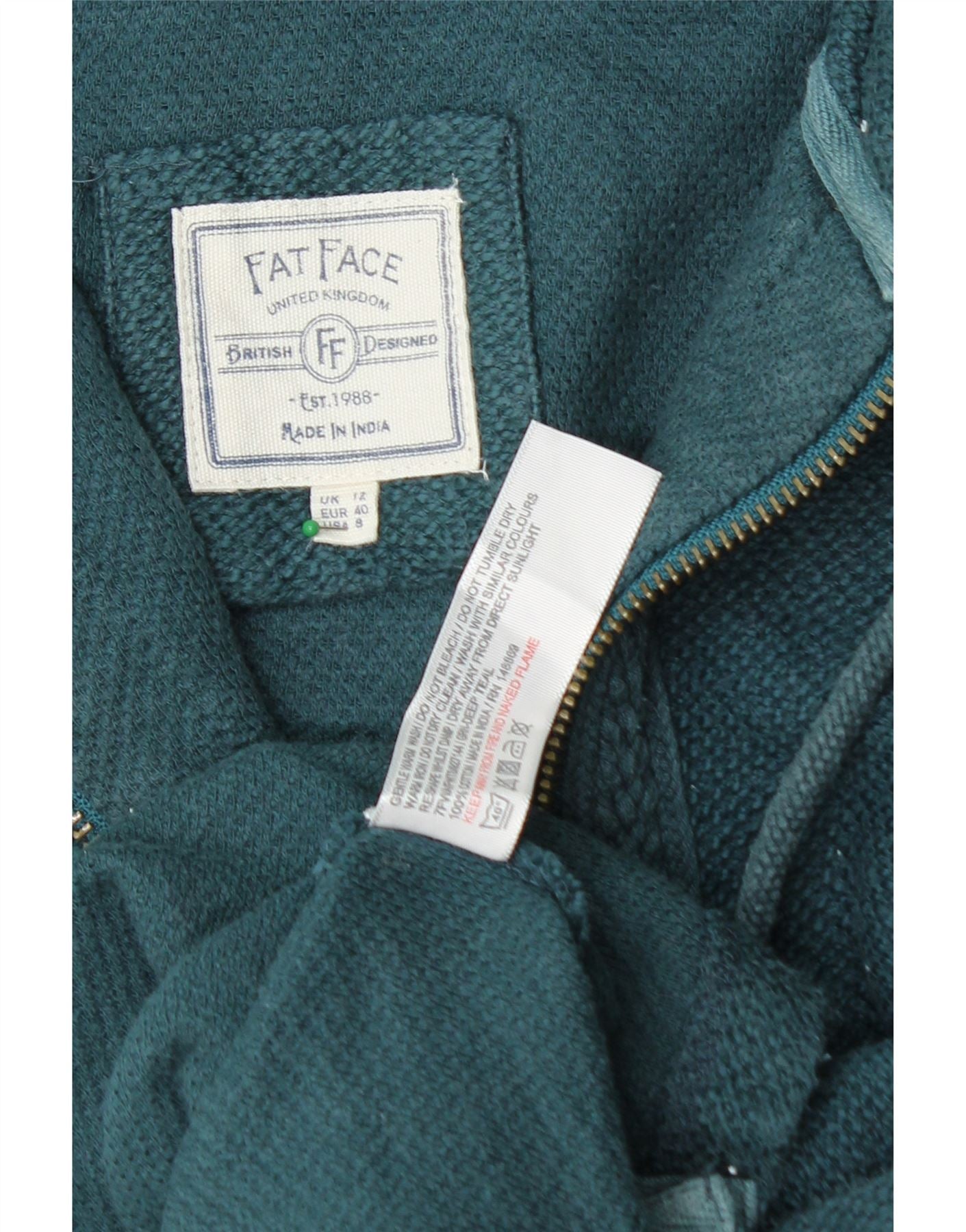 FAT FACE Dame hætte cardigan sweater UK 12 Medium Green Bomuld