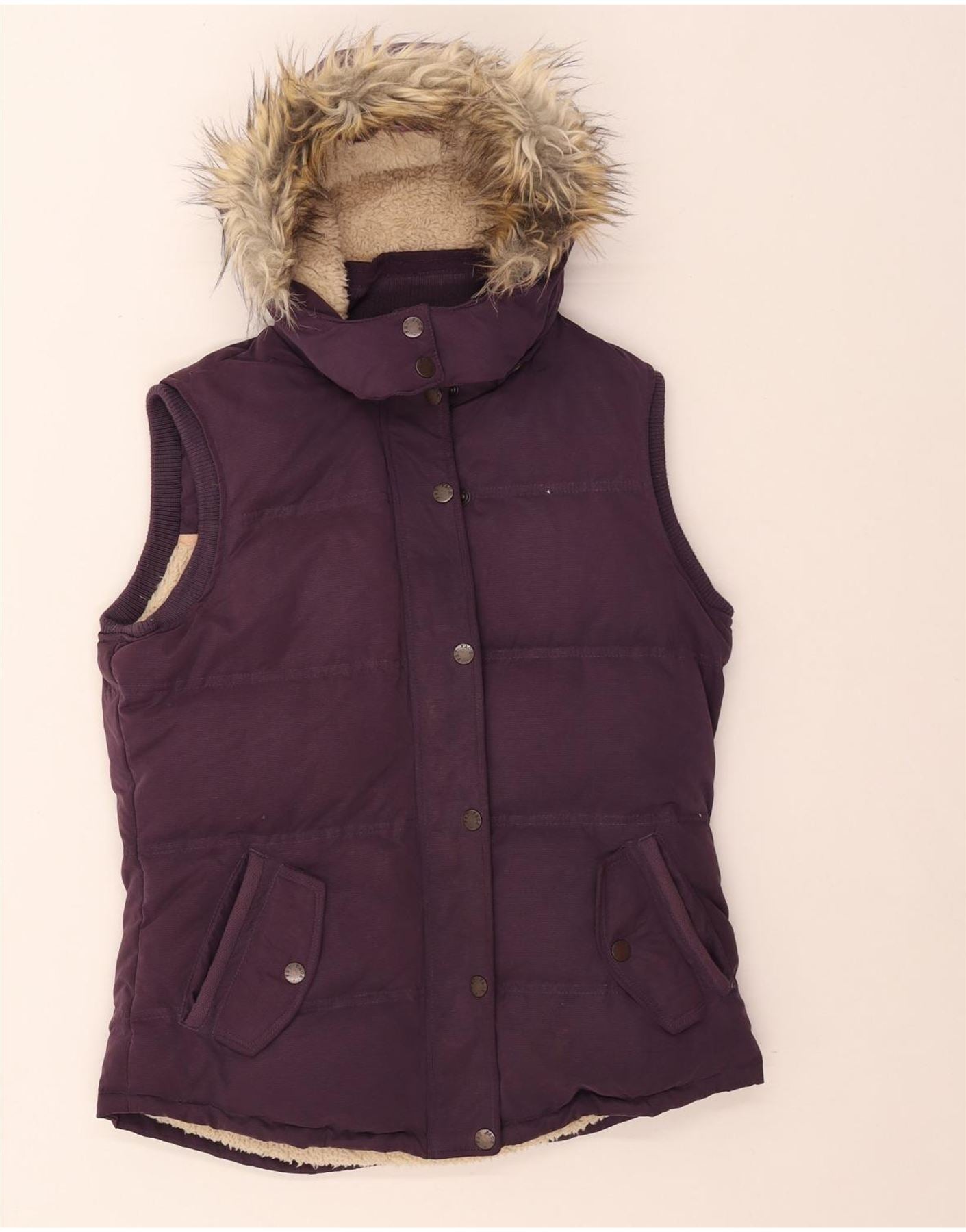 Fat Face Dame Hætte Polstret Gilet UK 12 Medium Lilla Polyester