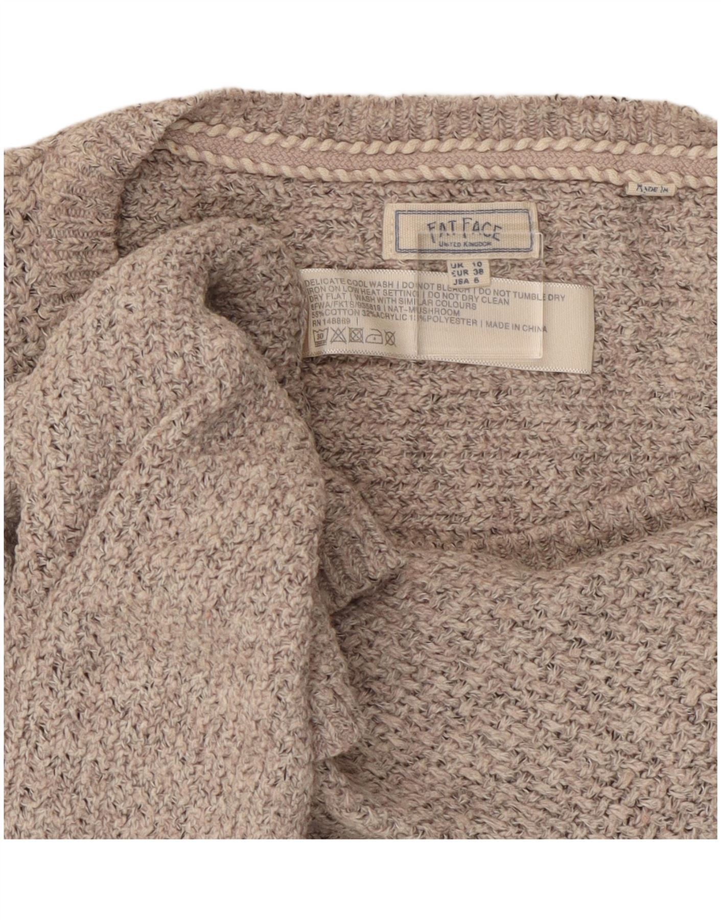 Fat Face Dame Oversized Boat Neck Jumper Sweater UK 10 Small Grey Bomuld