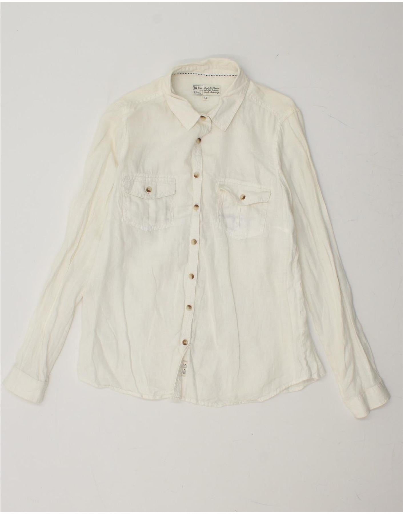 FAT FACE Dameskjorte UK 14 Medium Off White Linned