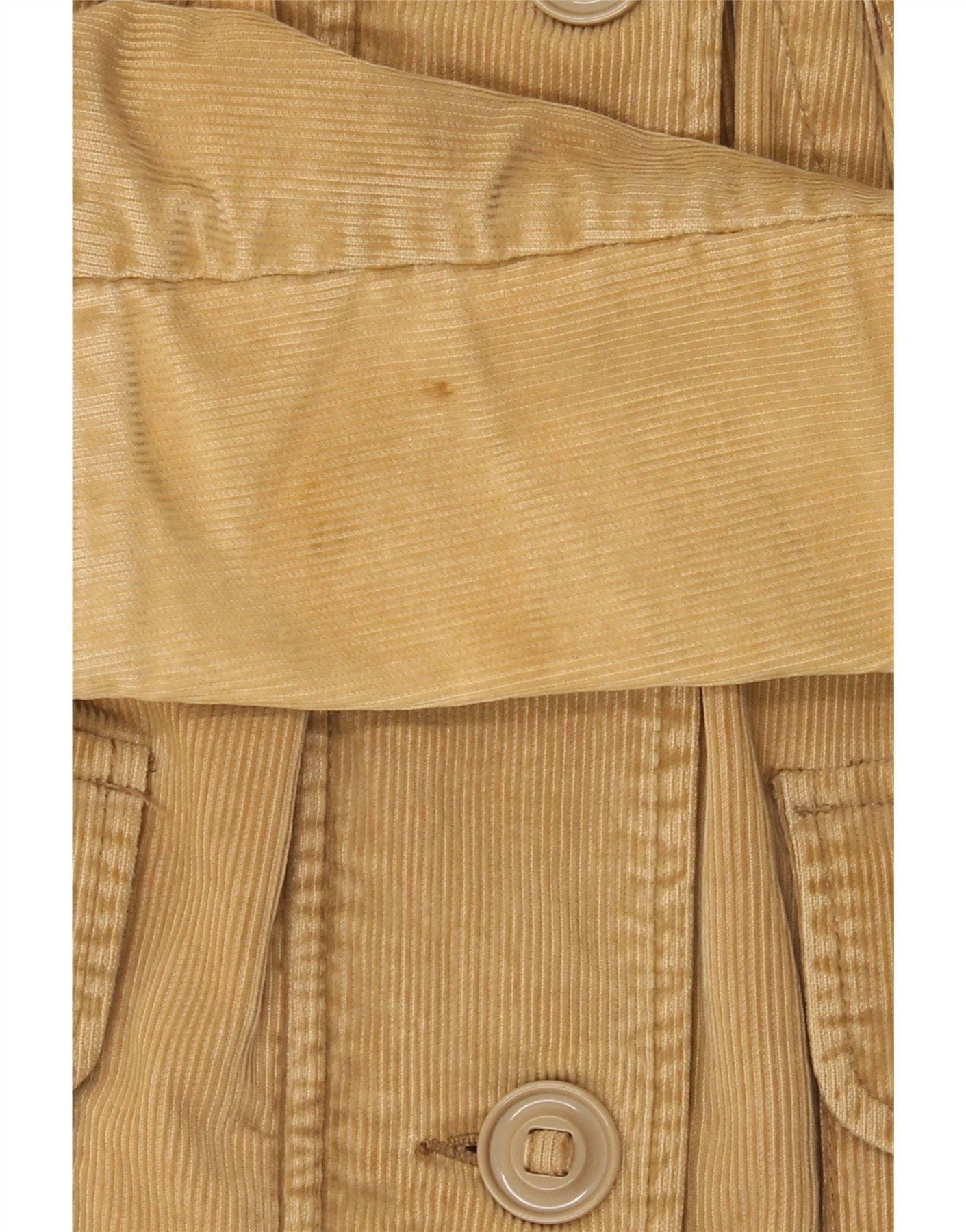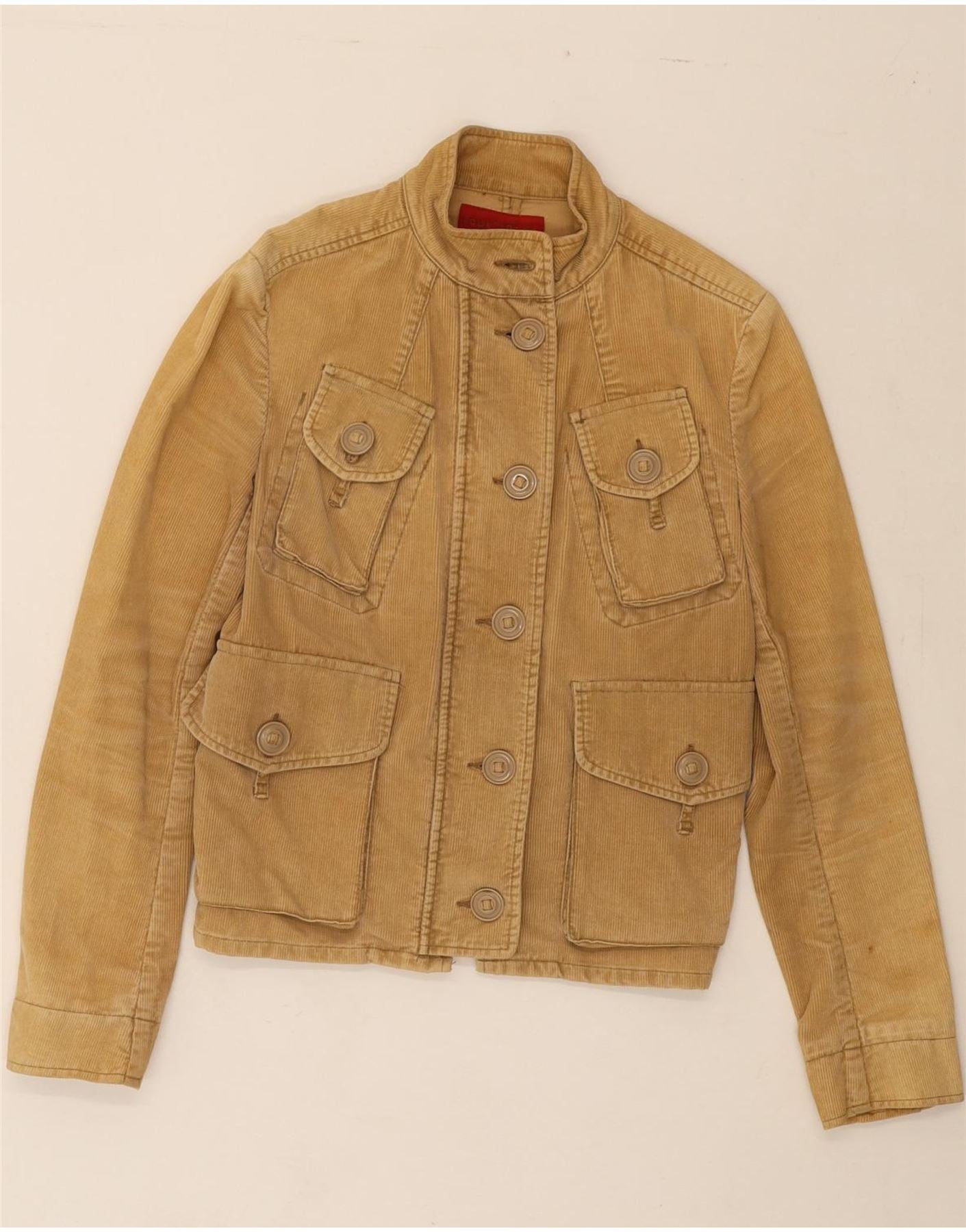- AI Description: This pre-owned FCUK jacket is a classic wardrobe staple. Crafted from 100% cotton corduroy in a versatile beige hue, this size 8 jacket features a regular fit, long sleeves, and a collared neckline. The button closure and button accents add to its timeless appeal. Design details include handy pockets and subtle logo detailing. While in excellent condition, there are minor stains on the front flap pocket and moderate visible wear on the cuffs. Washing instructions: Wash dark colours separately.