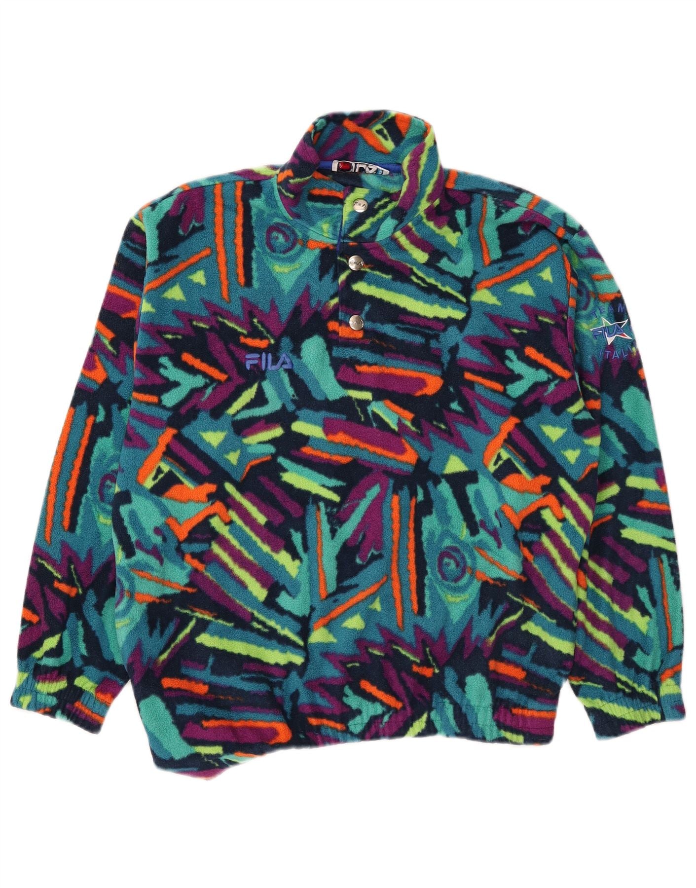 FILA Boys Button Neck Fleece Jumper 13-14 Years Multicoloured Geometric