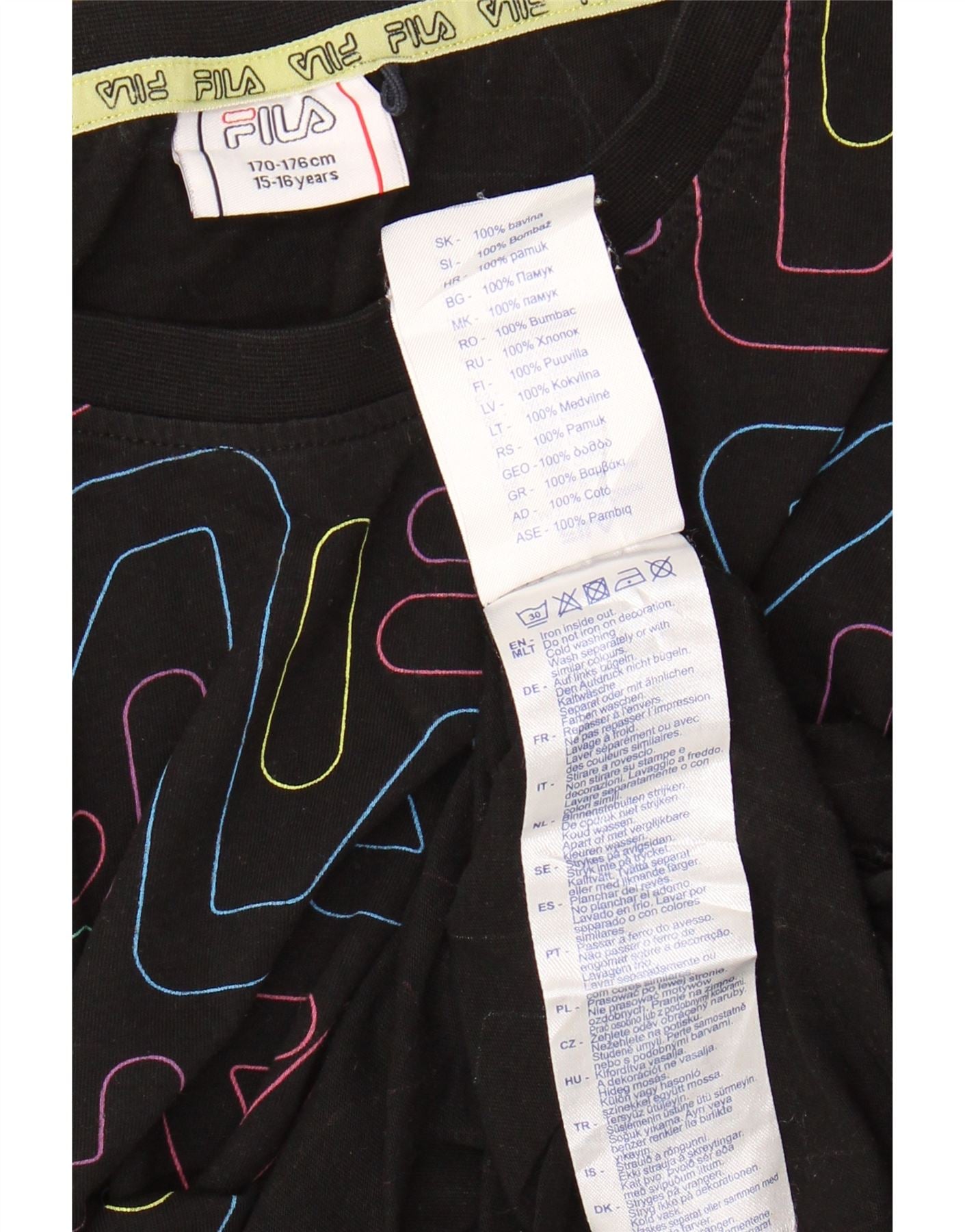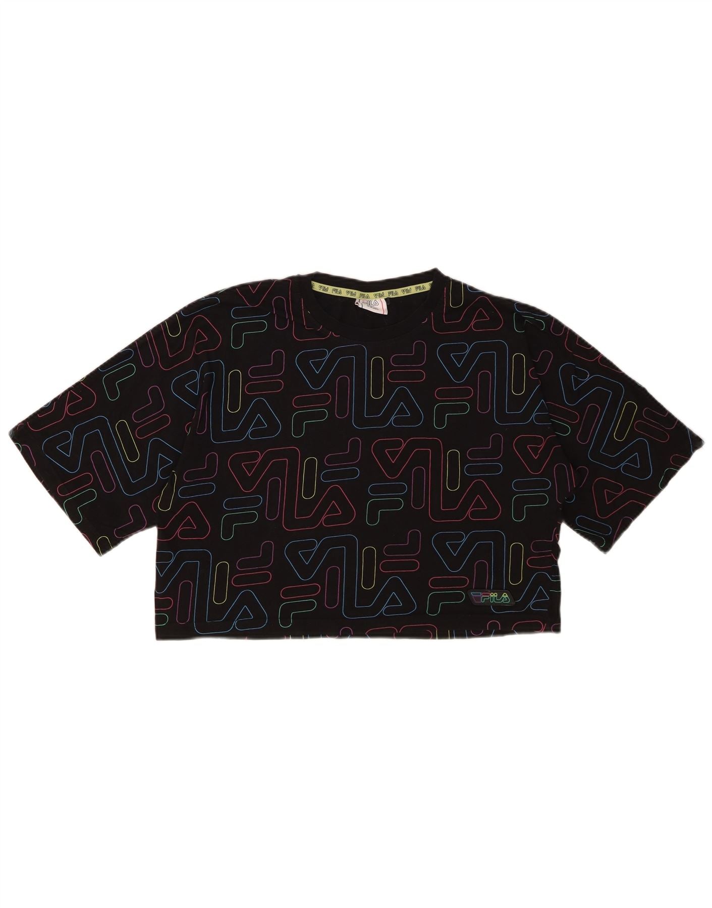 FILA Girls Crop Grafisk T-Shirt Top 15-16 År Sort Bomuld