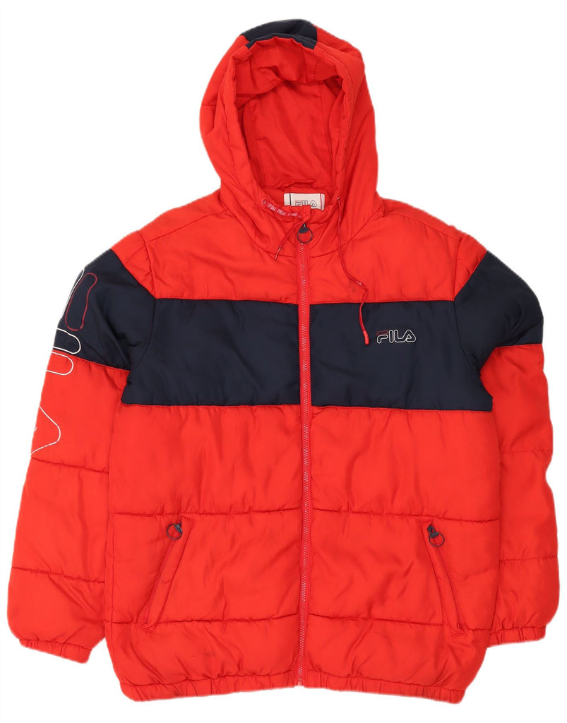 FILA Herre grafisk polstret hættejakke UK 38 Medium Red Colourblock