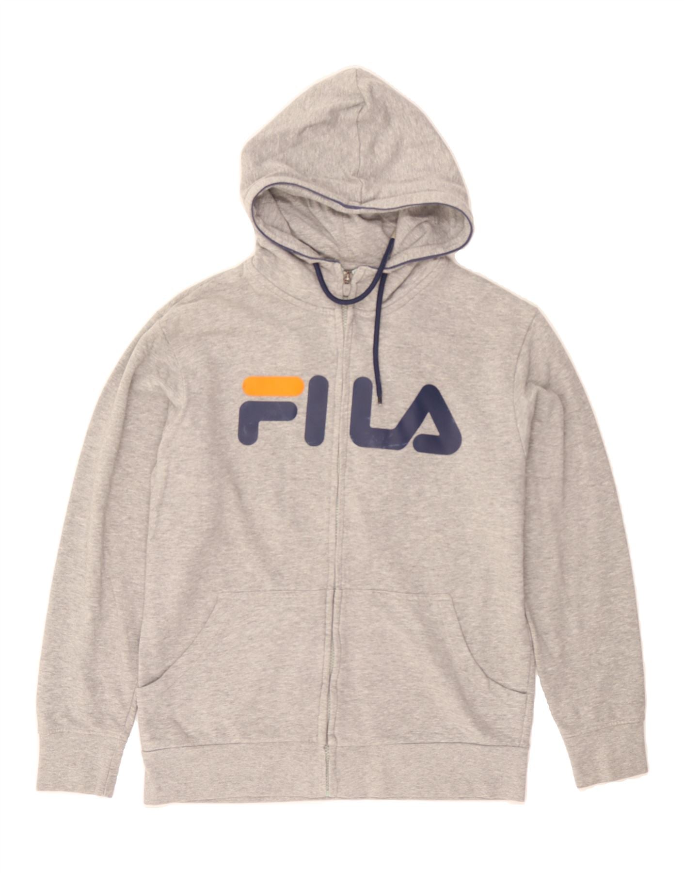 FILA Mens Graphic Zip Hoodie Sweater Medium Grey Cotton