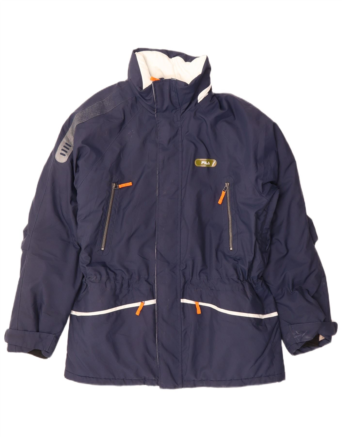 - AI beskrivelse: Denne polstrede Fila herrejakke er lavet af et slidstærkt marineblåt vævet stof. Den tilbyder vandtæt og vindtæt beskyttelse, ideel til udendørs sysler. Den høje hals og lange ærmer giver fremragende dækning. En fuld lynlås lukning sikrer fronten, suppleret med flere praktiske lommer. Lyse orange lynlås-accenter tilføjer en karakteristisk visuel detalje. Dens polstrede konstruktion sikrer varme, mens den almindelige pasform giver mulighed for behagelig lagdeling.