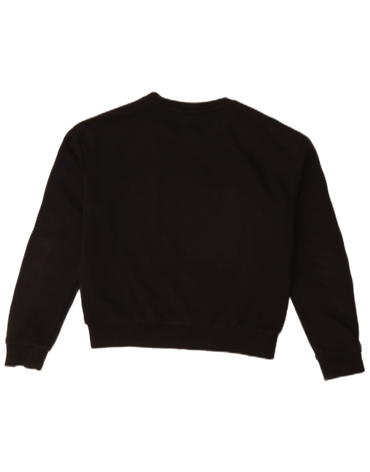 FILA Dame Grafisk Oversized Sweatshirt Jumper UK 6 XS Sort Colourblock