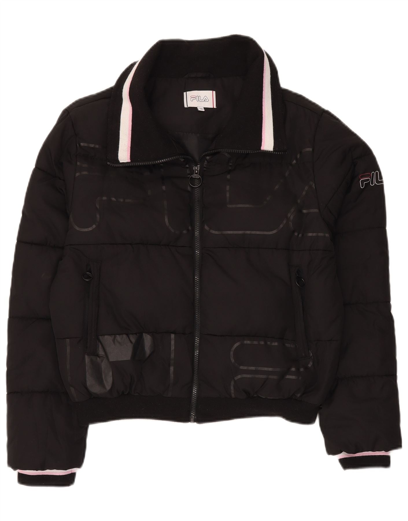 FILA Grafisk polstret jakke til kvinder UK 14 Medium Sort Polyester