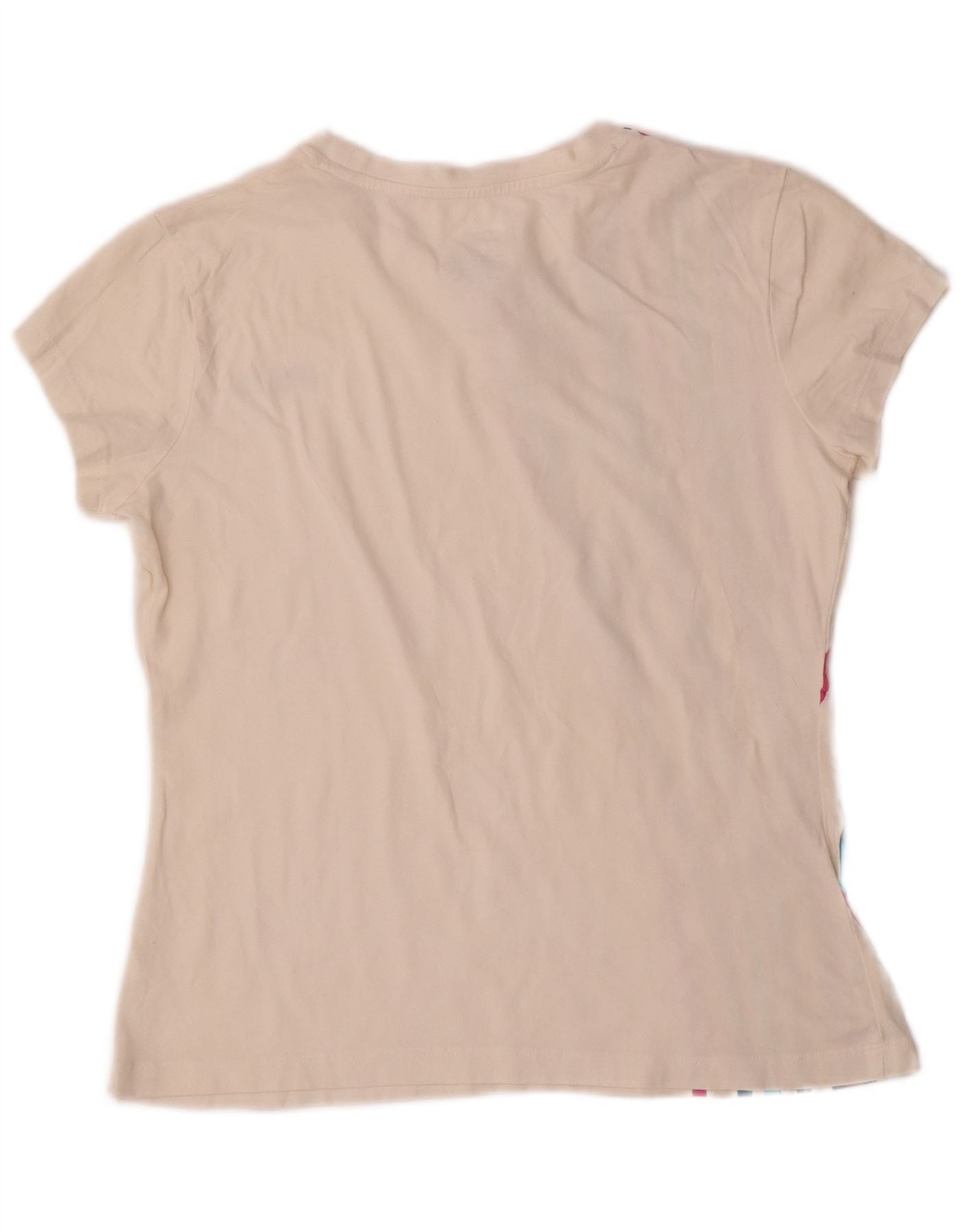 Fila Dame T-Shirt Top UK 14 Stor Off White Stribet Bomuld