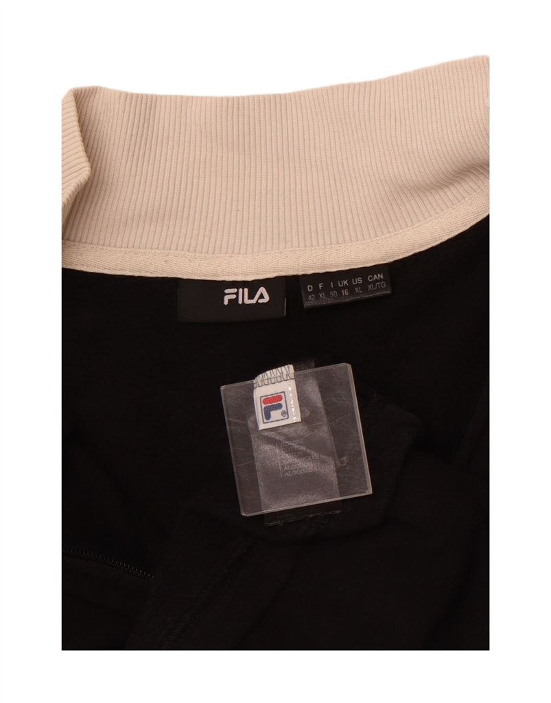 FILA Womens Tracksuit Top Jacket UK 16 Large Black Colourblock Cotton
