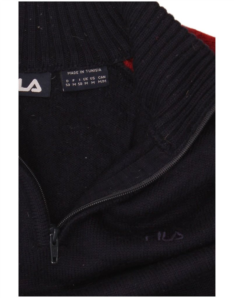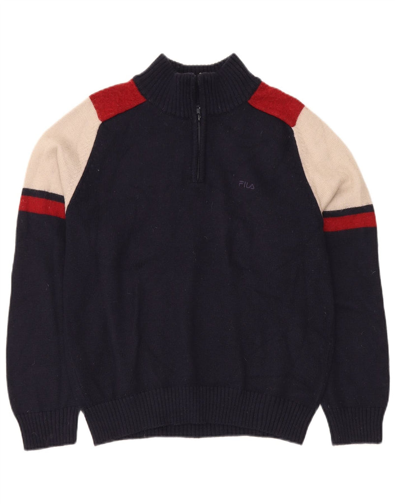 FILA sweater med lynlås til kvinder UK 14 Medium Navy Blue Colourblock