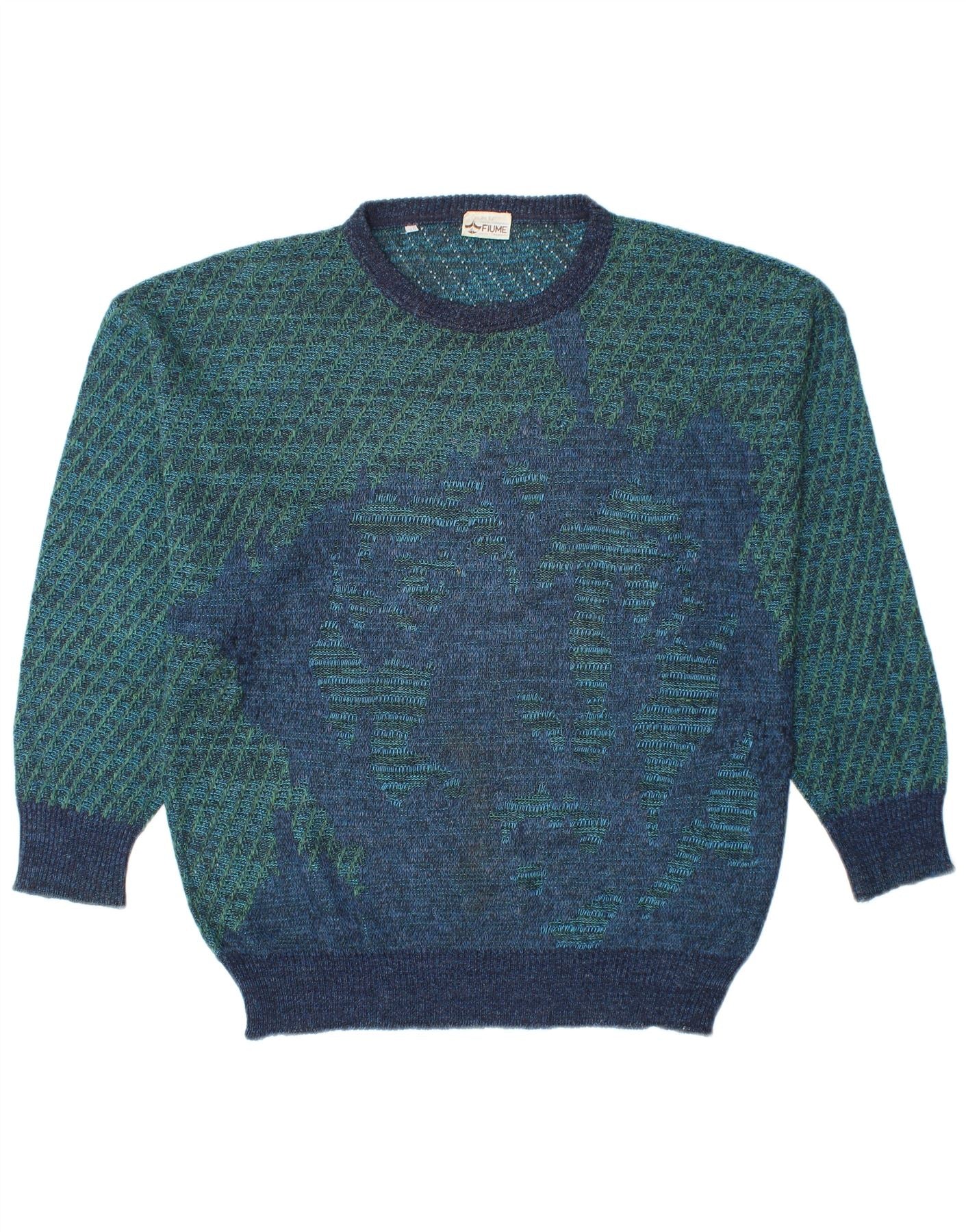 FIUME Herre rund hals sweater IT 52 Stor blå stribet akryl