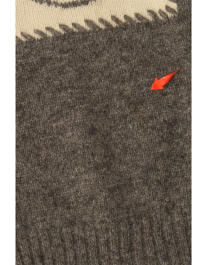 FJALL RAVEN Womens Graphic Zip Neck Jumper Sweater UK 10 Small Grey