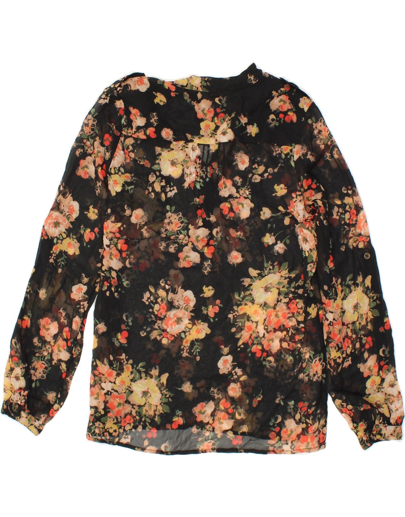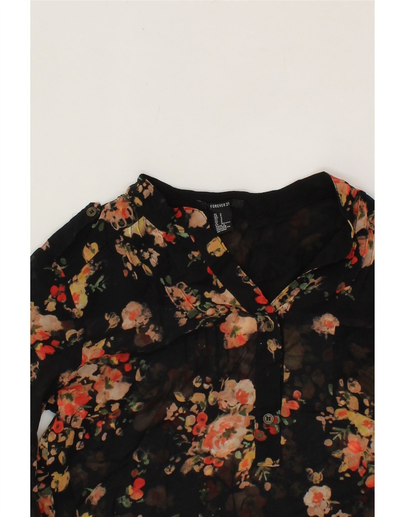 FOREVER 21 Womens Long Sleeve Blouse Top UK 10 Small Black Floral