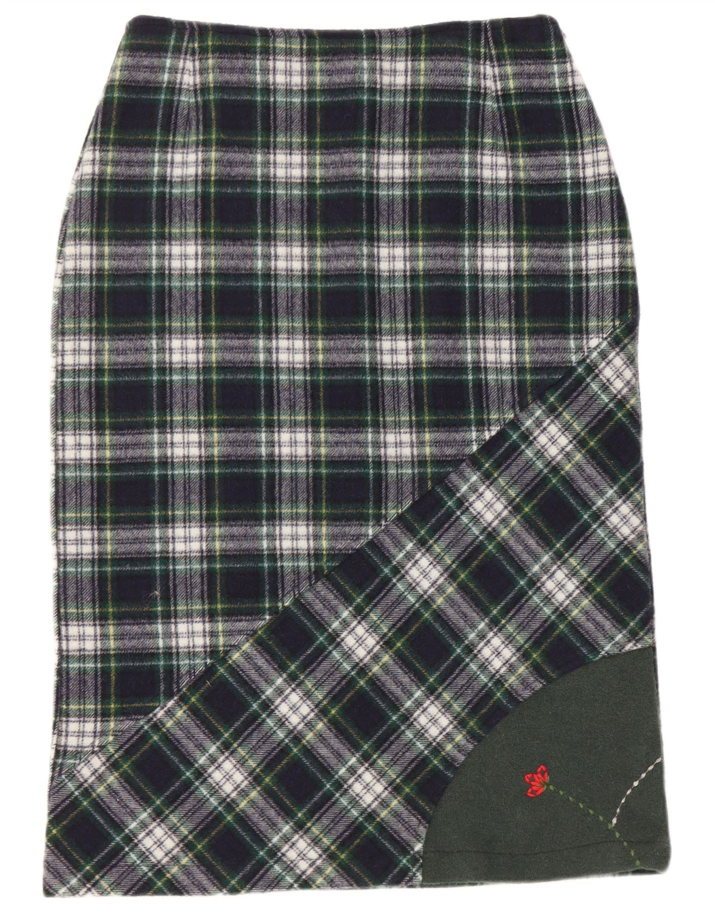 FORT & MADOX Dame Pencil Skirt IT 44 Medium W28 Marineblå ternet uld