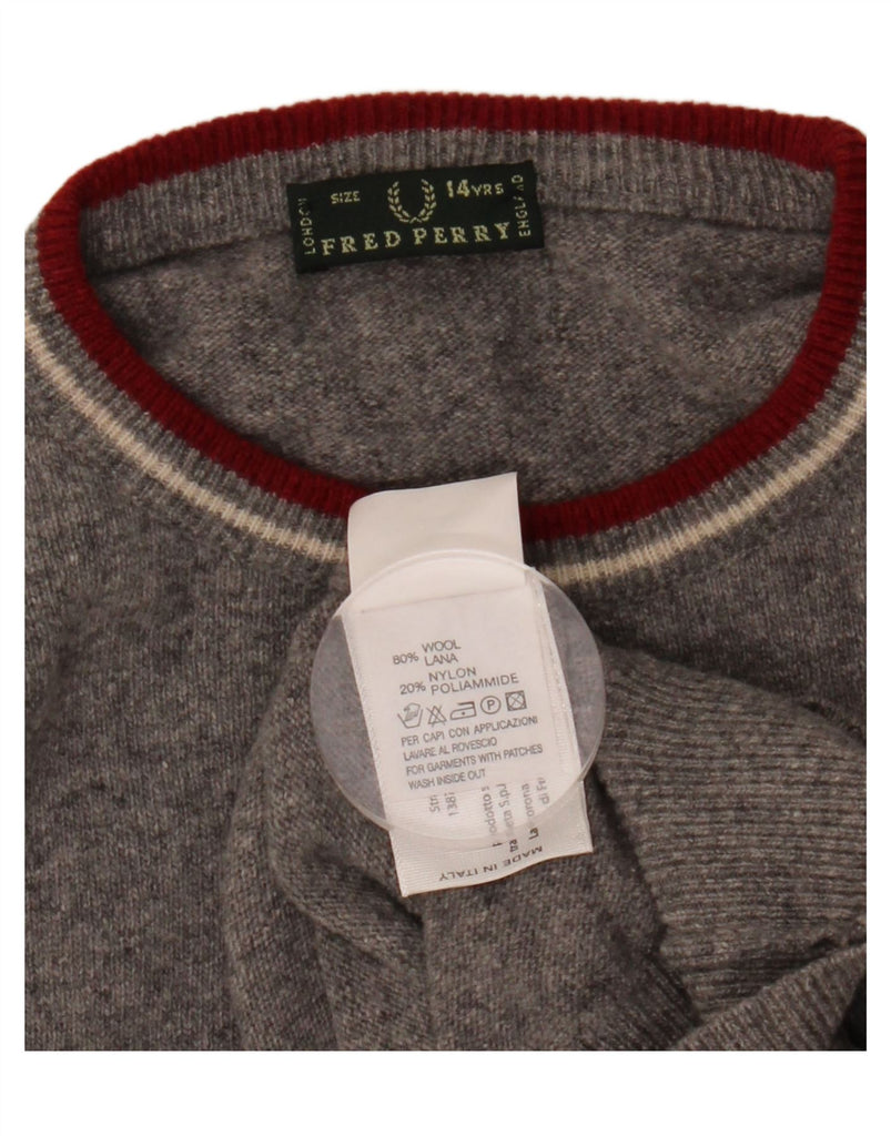 FRED PERRY Boys Crew Neck Jumper Sweater 13-14 Years Grey Wool