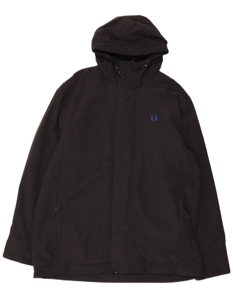 FRED PERRY Vindjakke med hætte til mænd UK 42 XL Sort Polyester