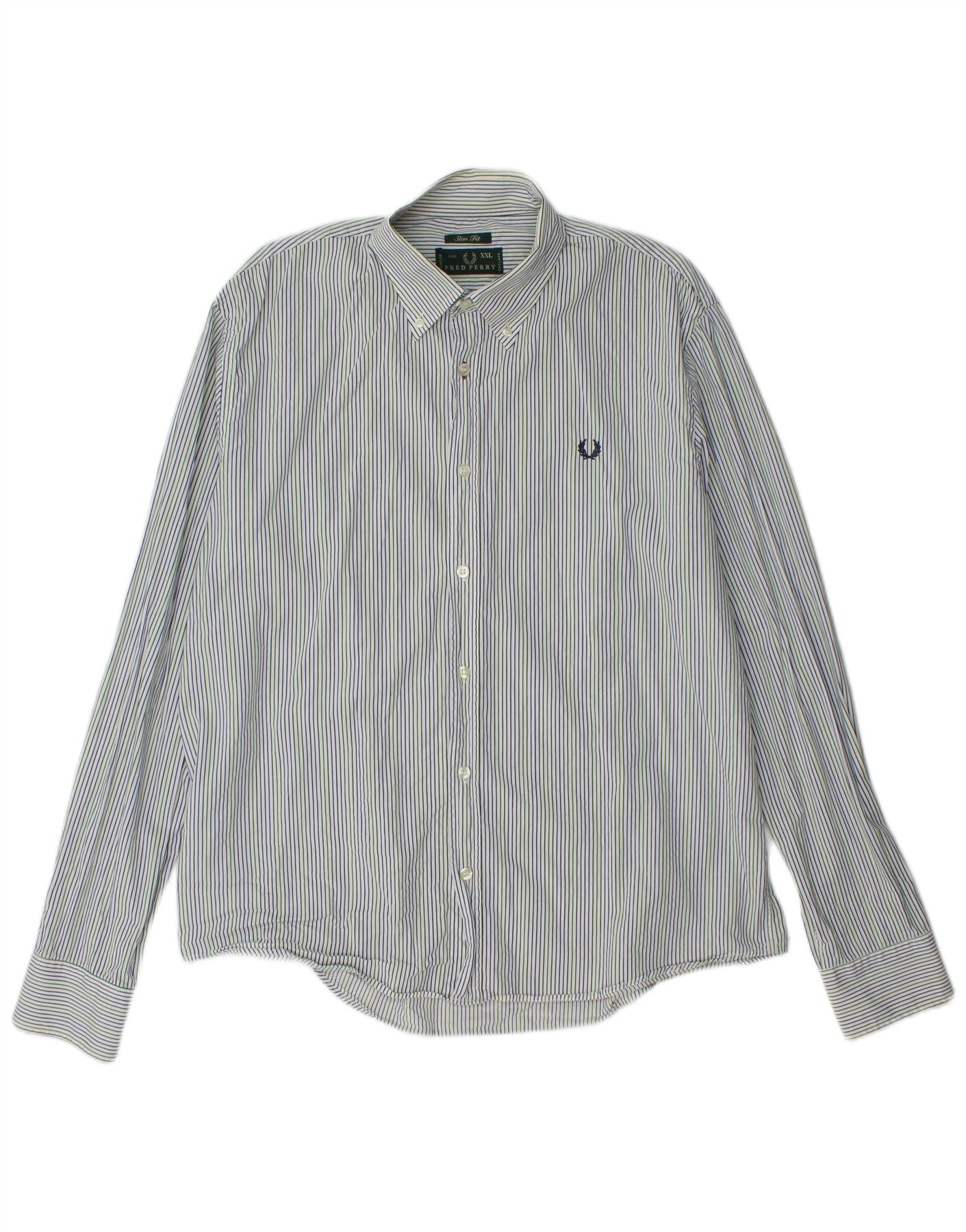 FRED PERRY Herre Slim Fit skjorte 2XL Blå nålestribet bomuld