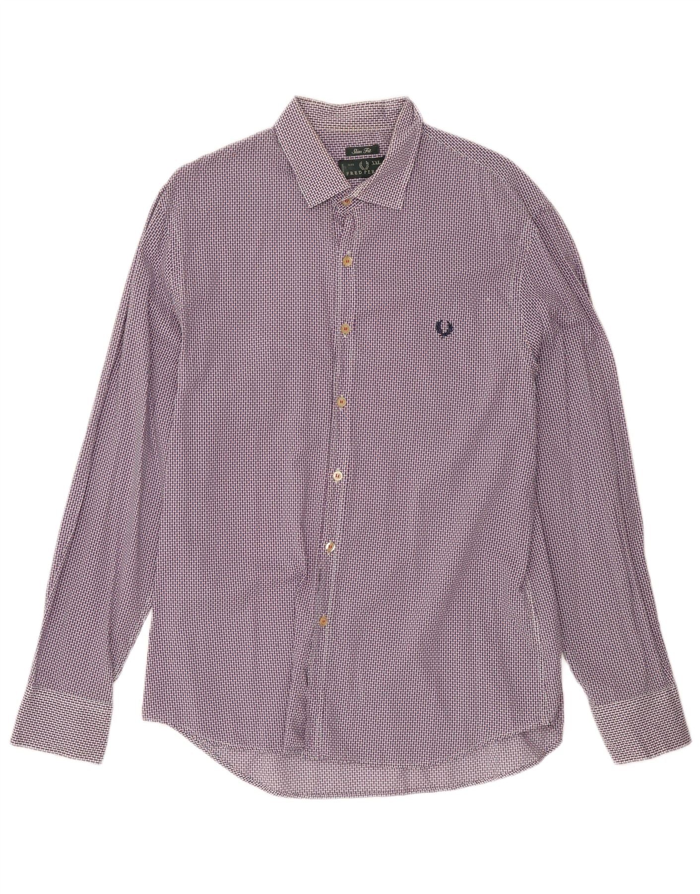 Fred Perry Herre Slim Fit skjorte 2XL marineblå geometrisk bomuld