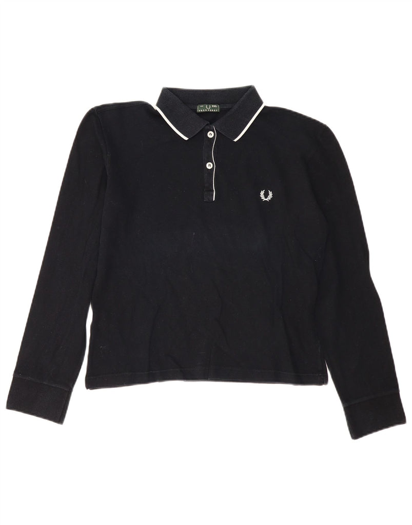 FRED PERRY Dame Crop Langærmet Polo Shirt UK 20 2XL Sort Bomuld