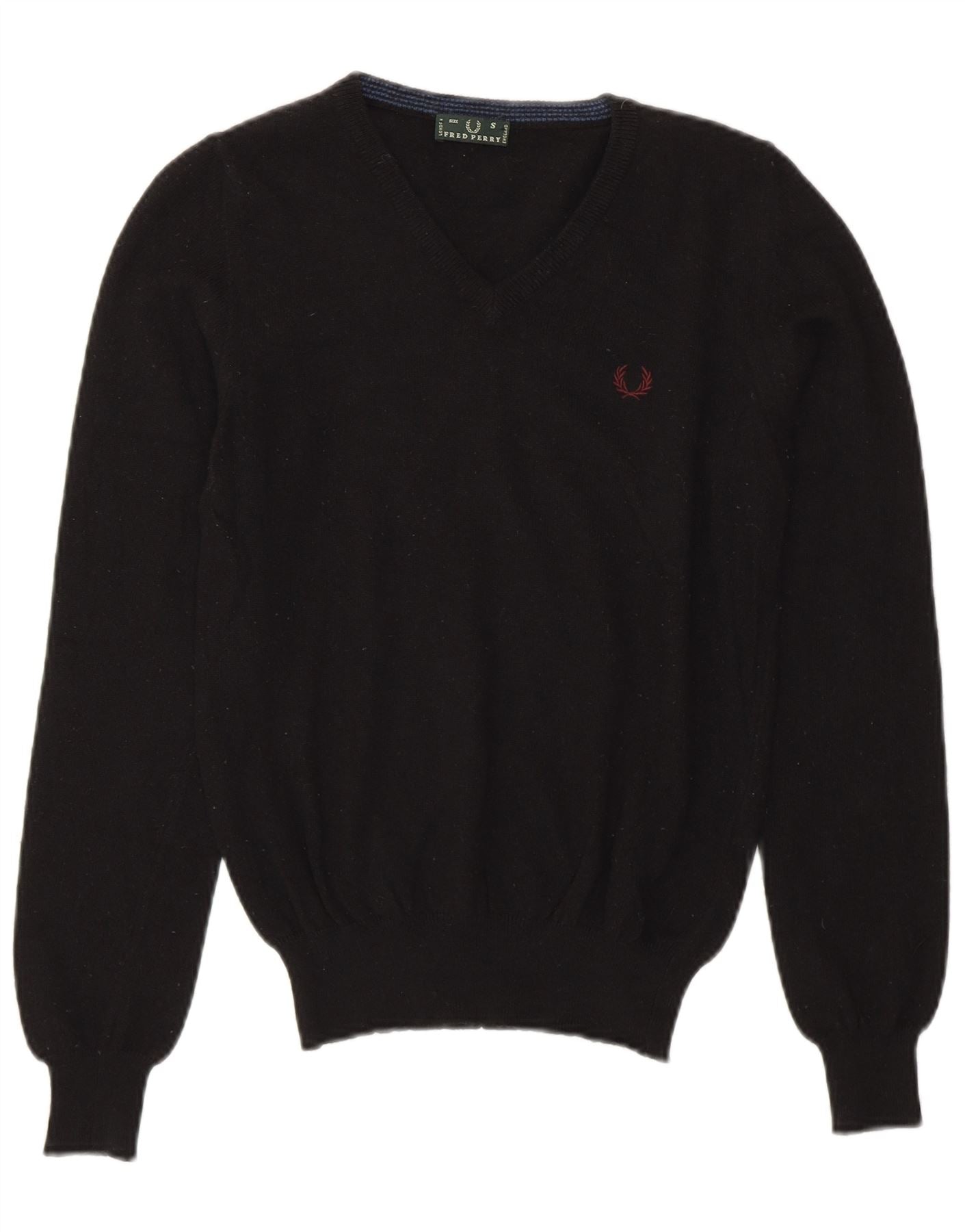 Fred Perry Womens Crop V-hals sweater UK 10 Small Black Merino Wool