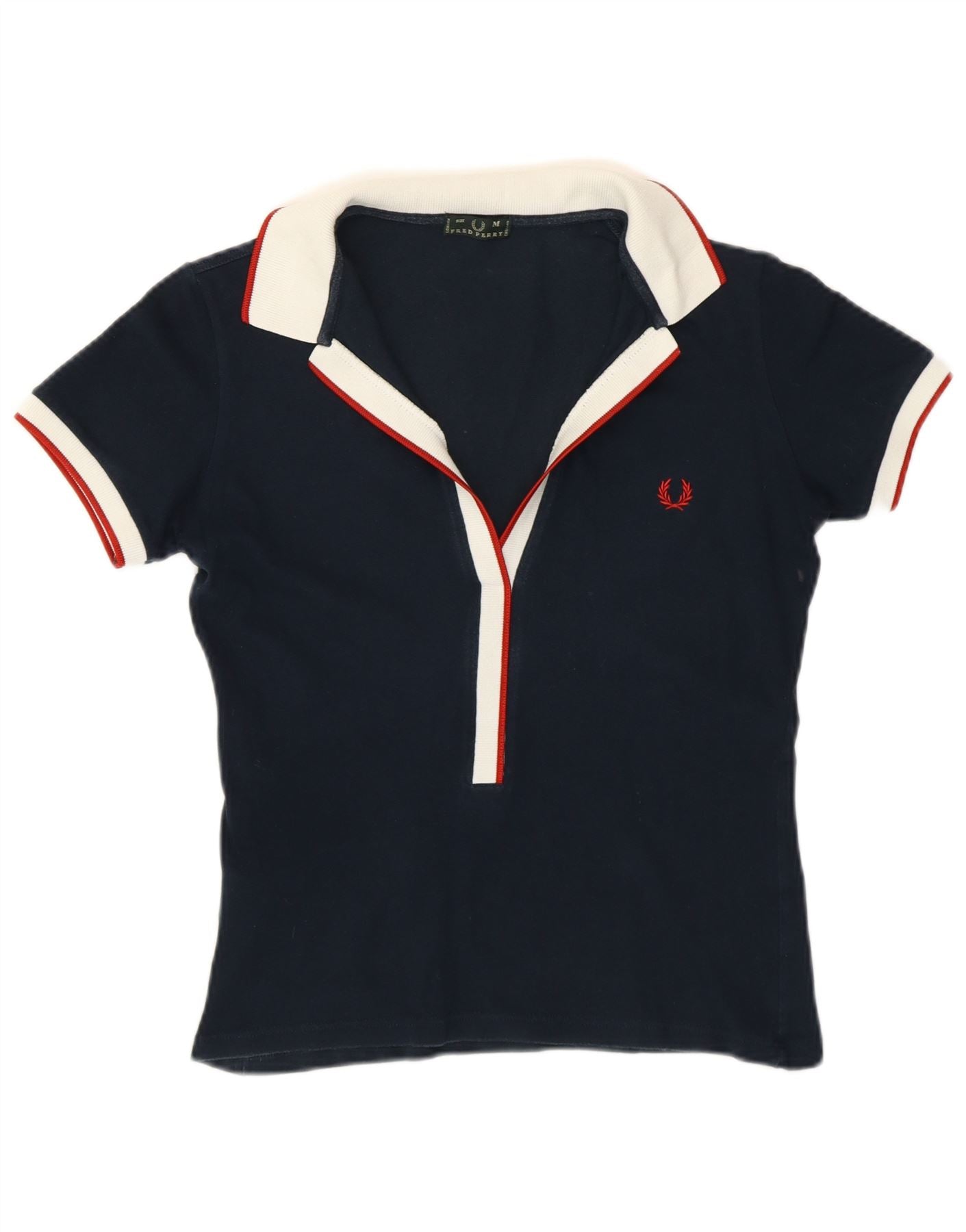 FRED PERRY Dame Polo Shirt UK 12 Medium Navy Blue