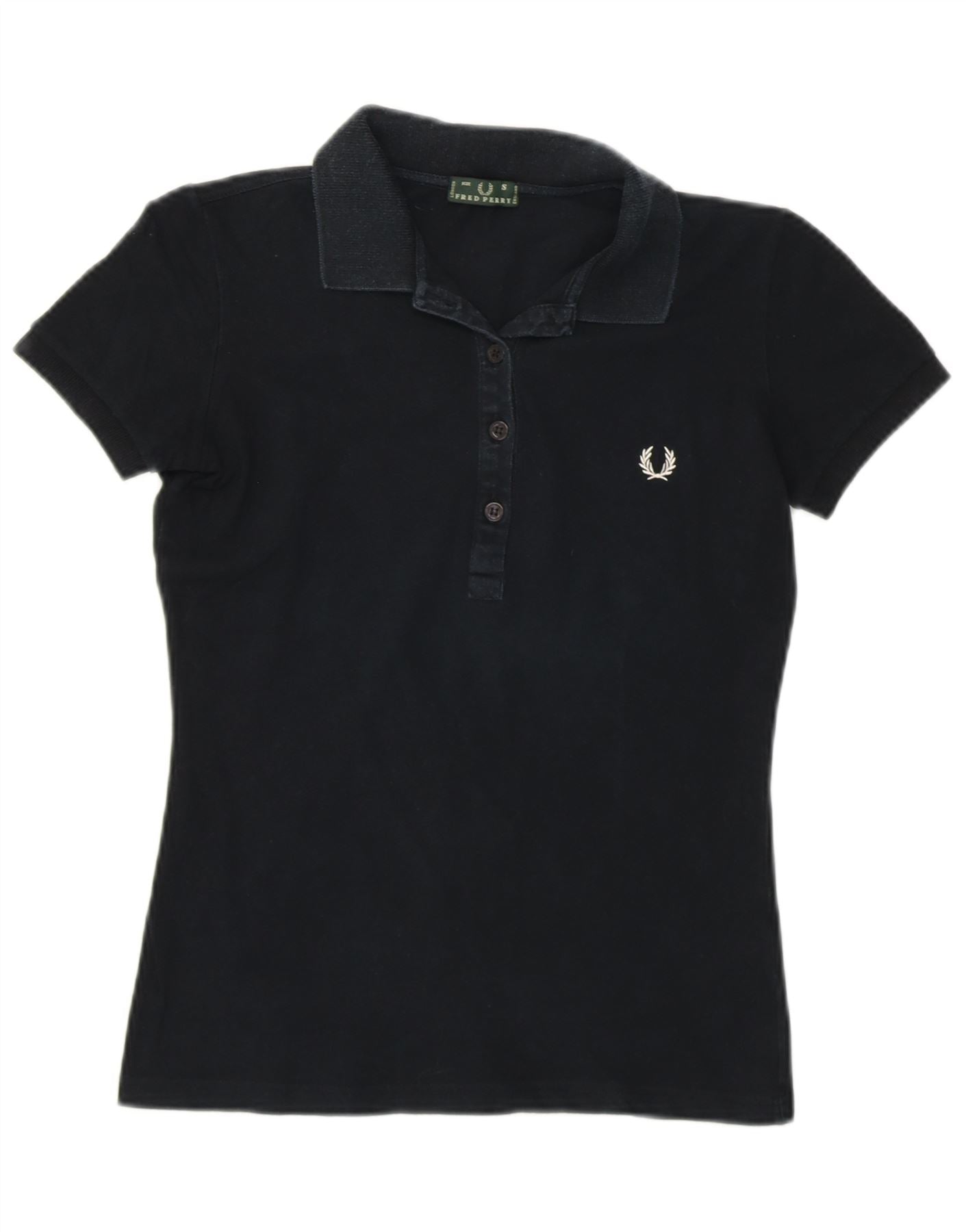 FRED PERRY Dame Polo Shirt UK 8 Small Black Bomuld