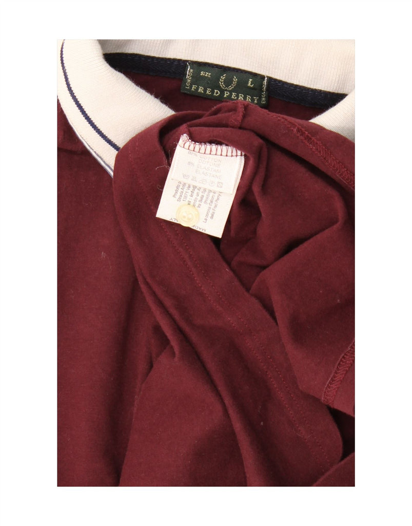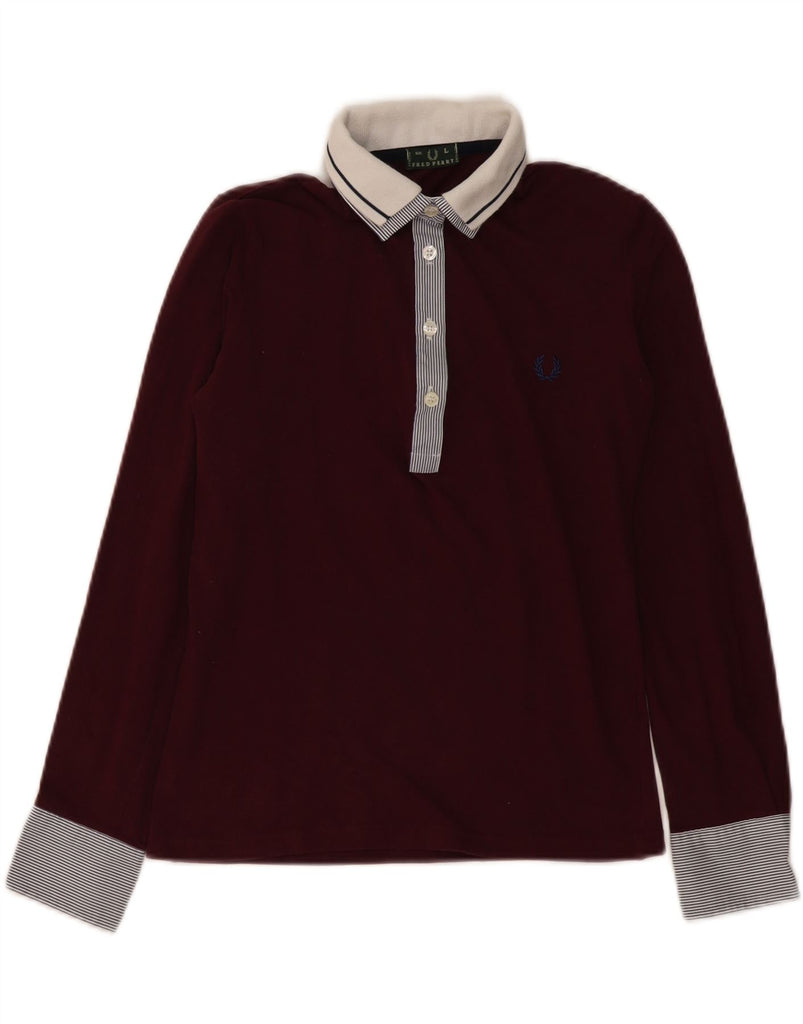 FRED PERRY Womens Rugby Polo Shirt UK 14 Large Maroon Colourblock