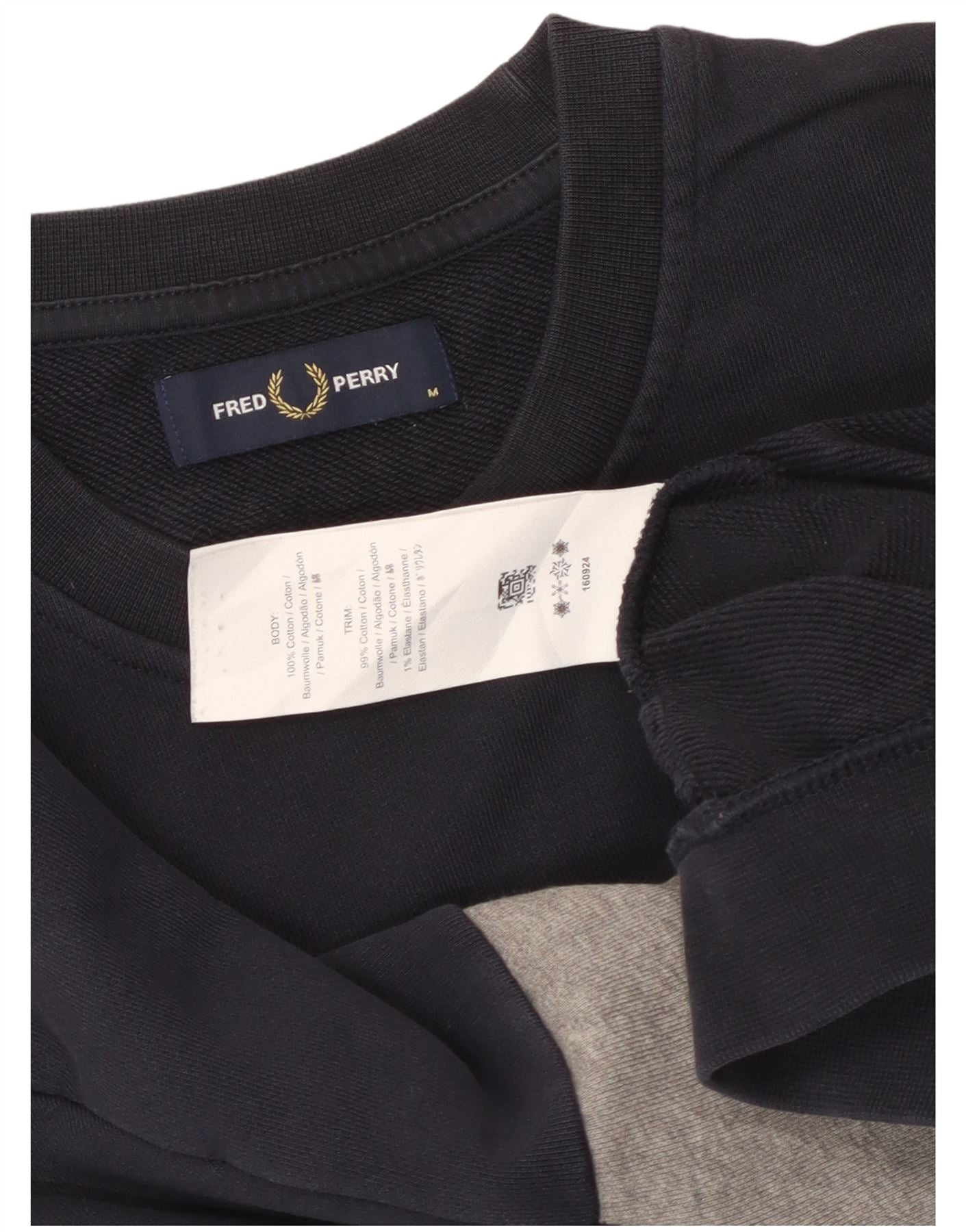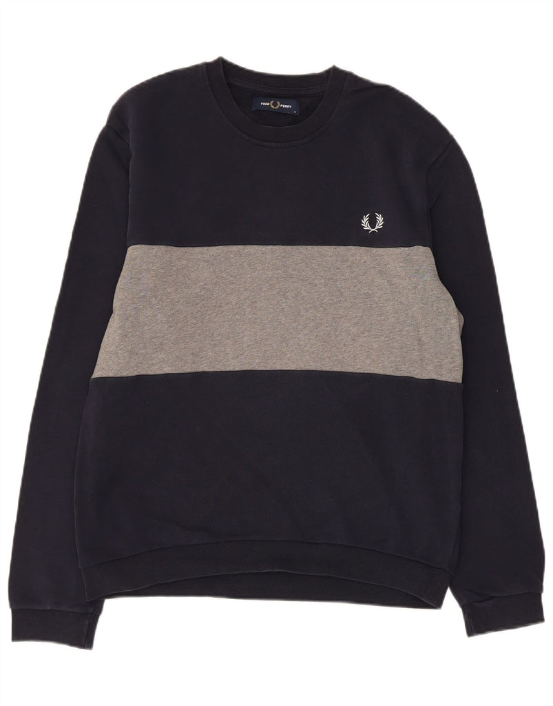 FRED PERRY Dame Sweatshirt Jumper UK 14 Medium Navy Blue Colourblock
