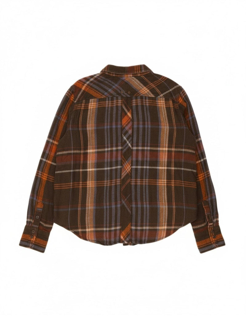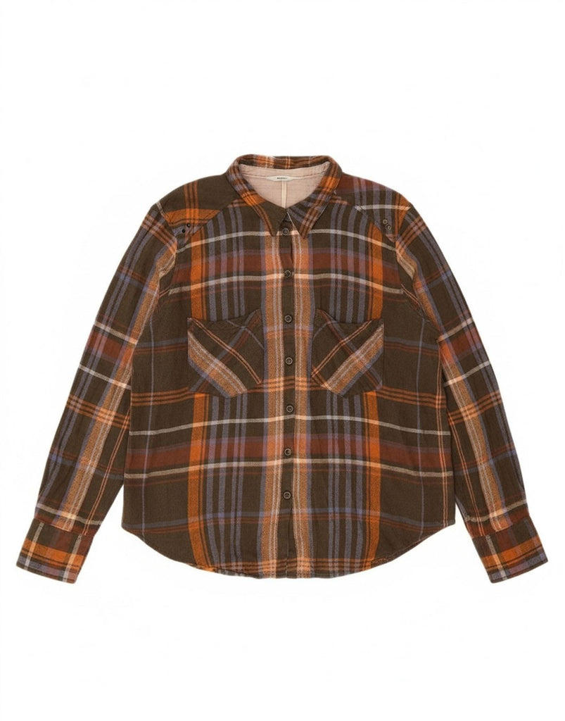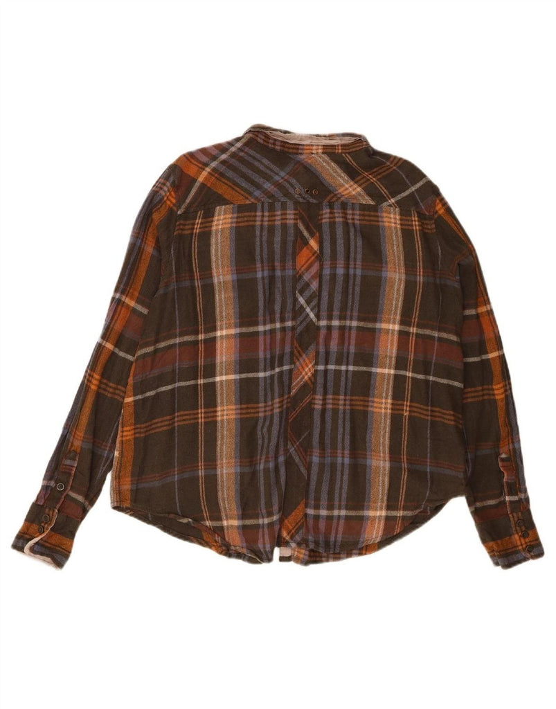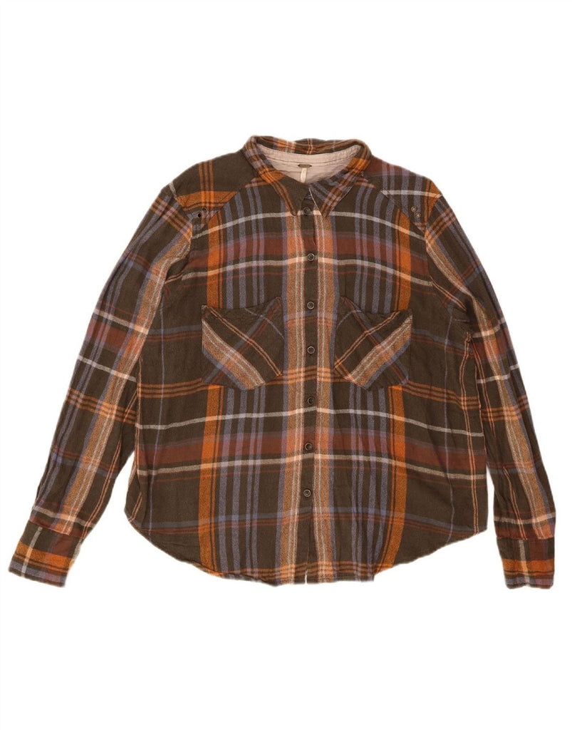 FREE PEOPLE Womens Oversized Flannel Shirt UK 14 Medium Brown Check Rayon