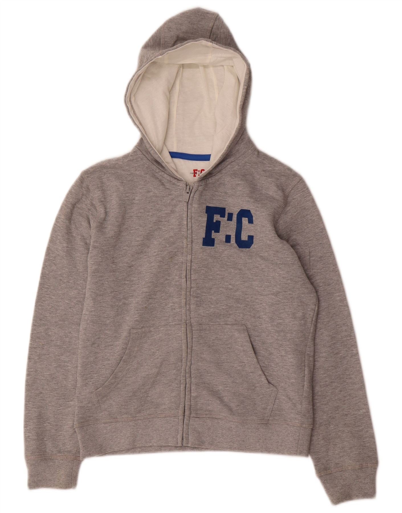 FRENCH CONNECTION Boys Graphic Zip Hoodie Sweater 10-11 Years Grey Flecked