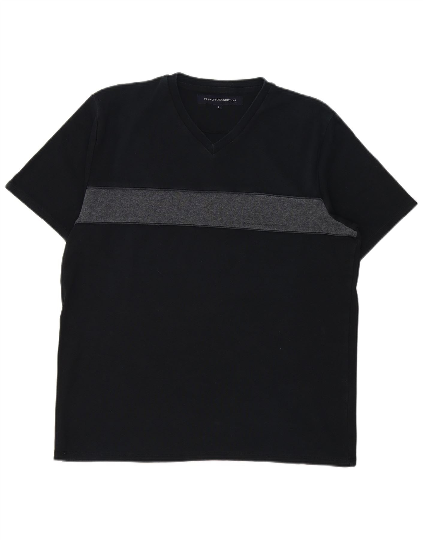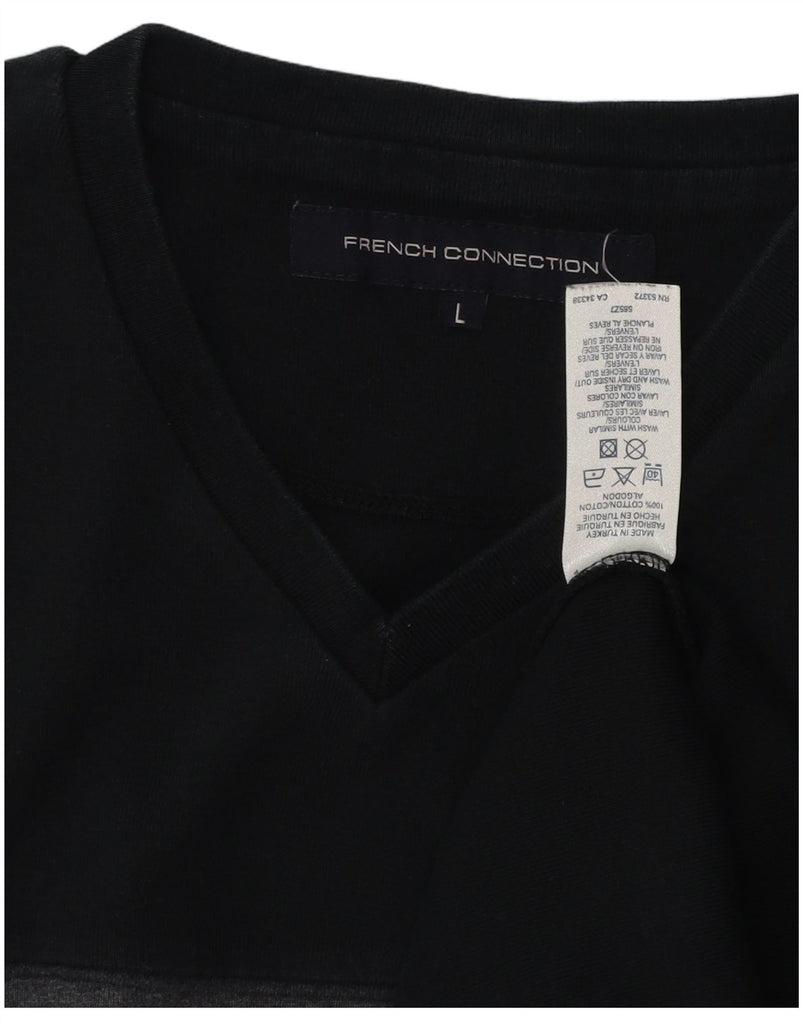 FRENCH CONNECTION Mens T-Shirt Top Large Black Colourblock Cotton