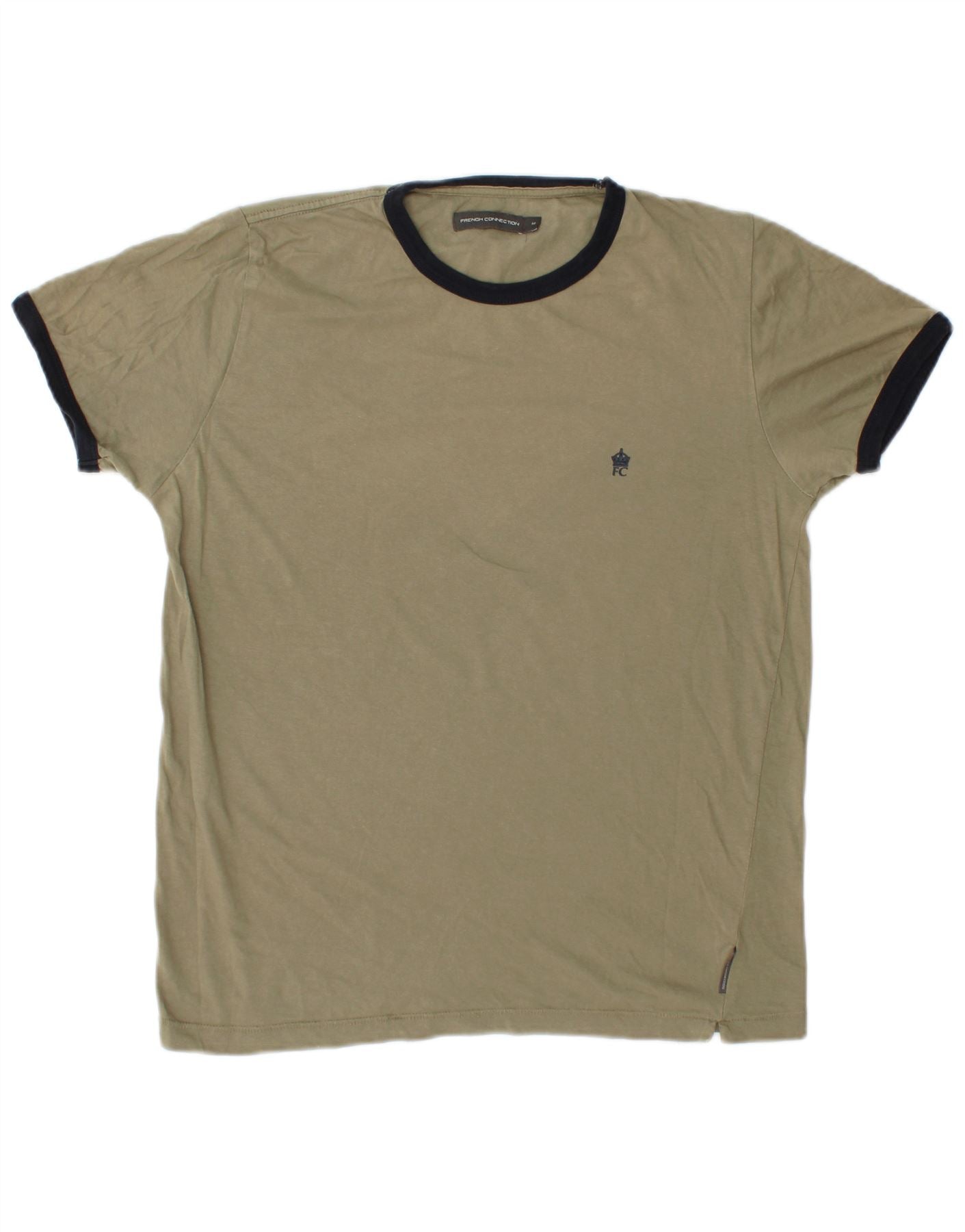 FRENCH CONNECTION Mens T-Shirt Top Medium Khaki Cotton
