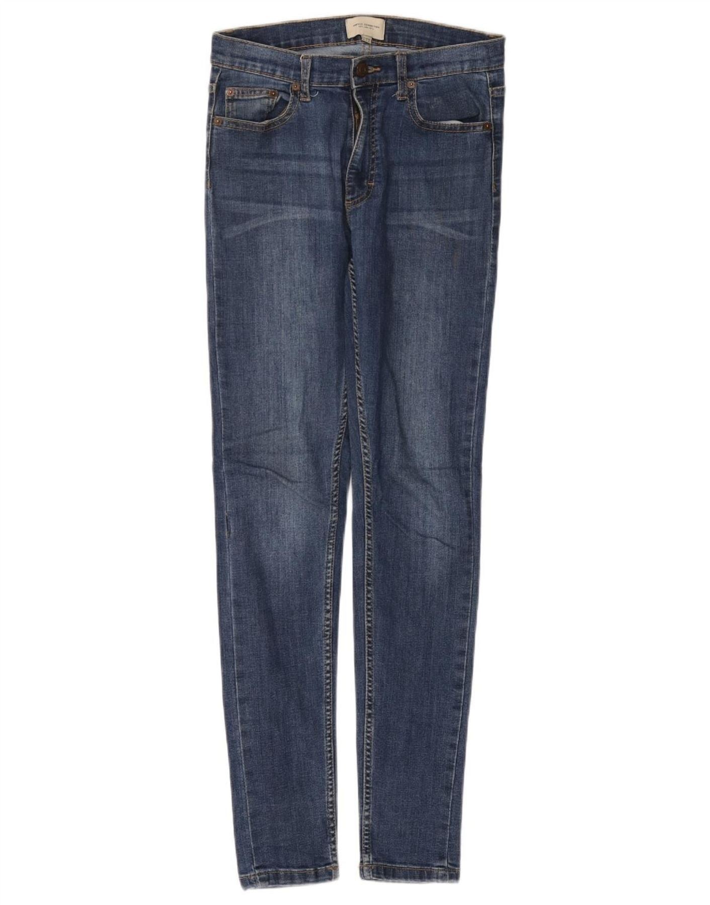 FRANSK FORBINDELSE Dame Skinny Jeans UK 10 Small W27 L30 Marineblå Bomuld