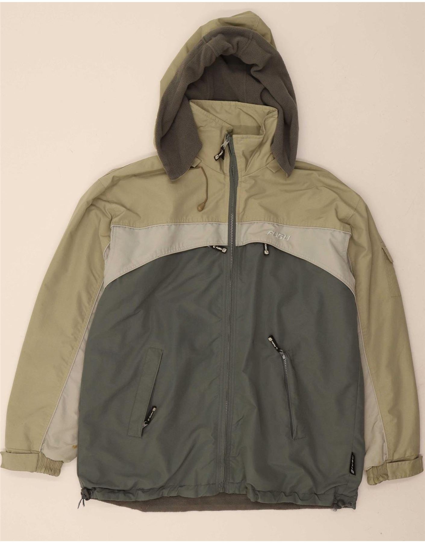 FUBU Mens Hooded Reversible Jacket UK 40 Large Grey Colourblock Nylon