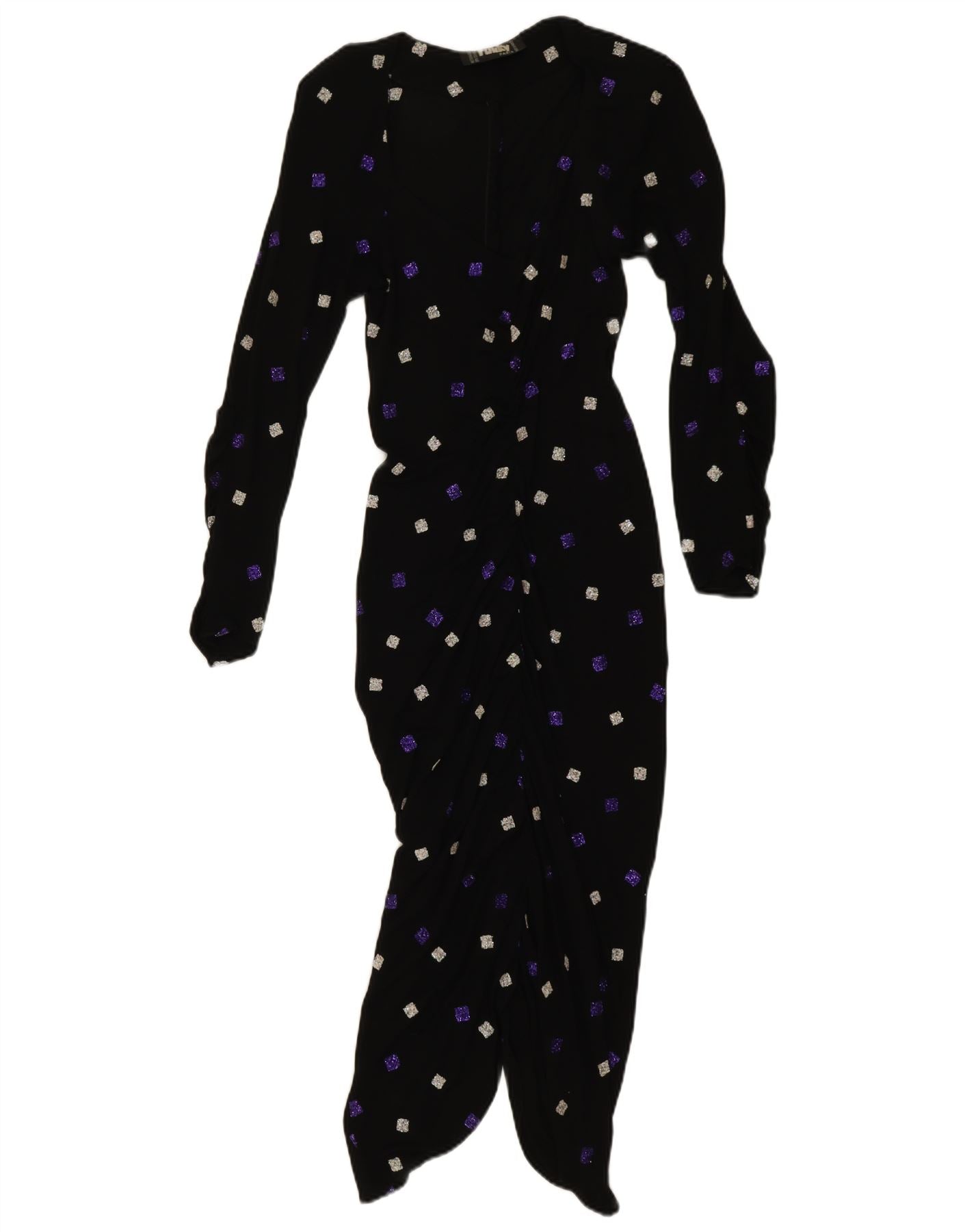 Funky Dame Langærmet Bodycon Kjole UK 10 Lille Sort Geometrisk