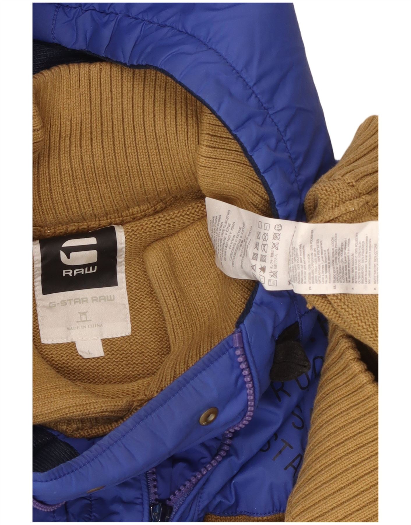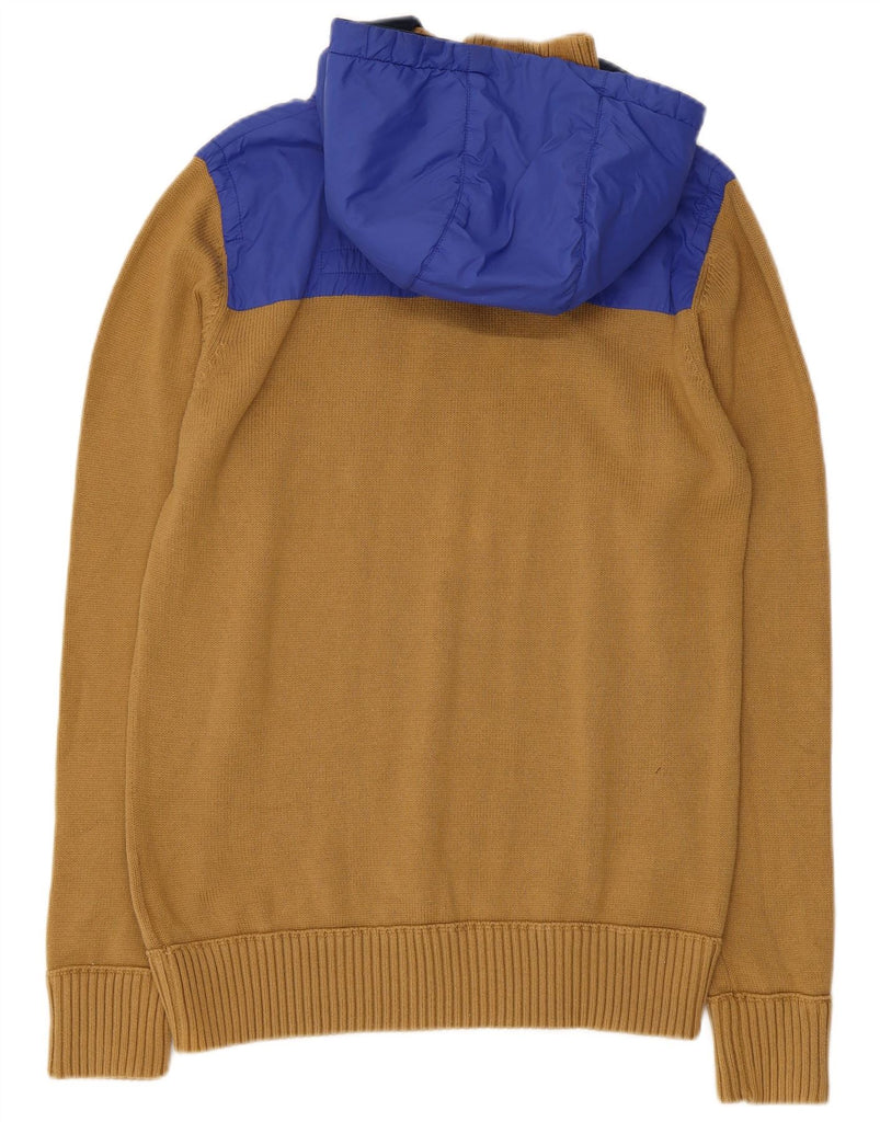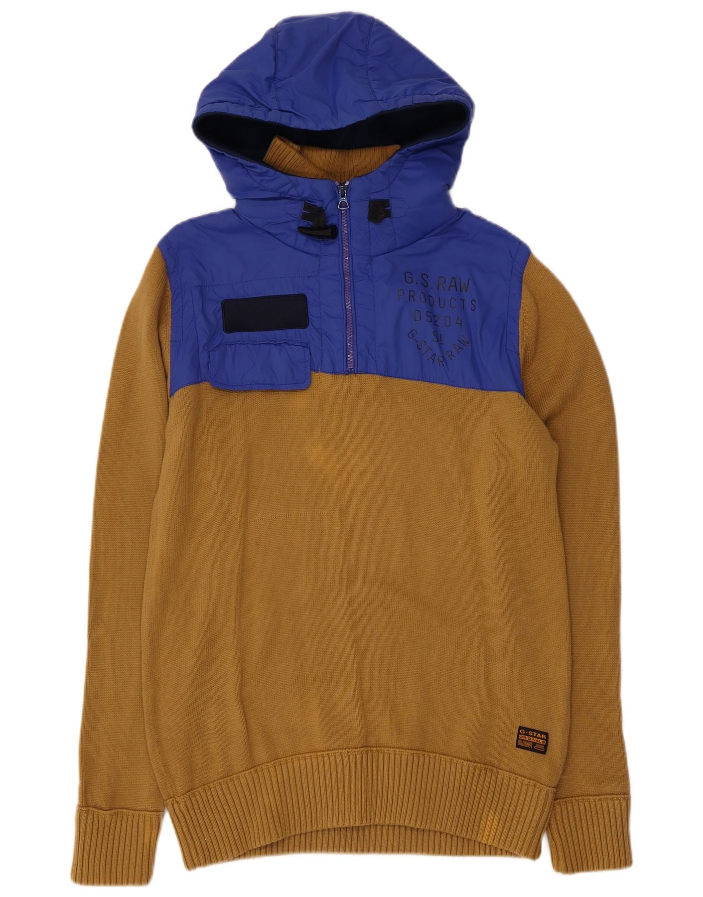 G-STAR Mens Graphic Hooded Zip Neck Jumper Sweater Large Beige Colourblock
