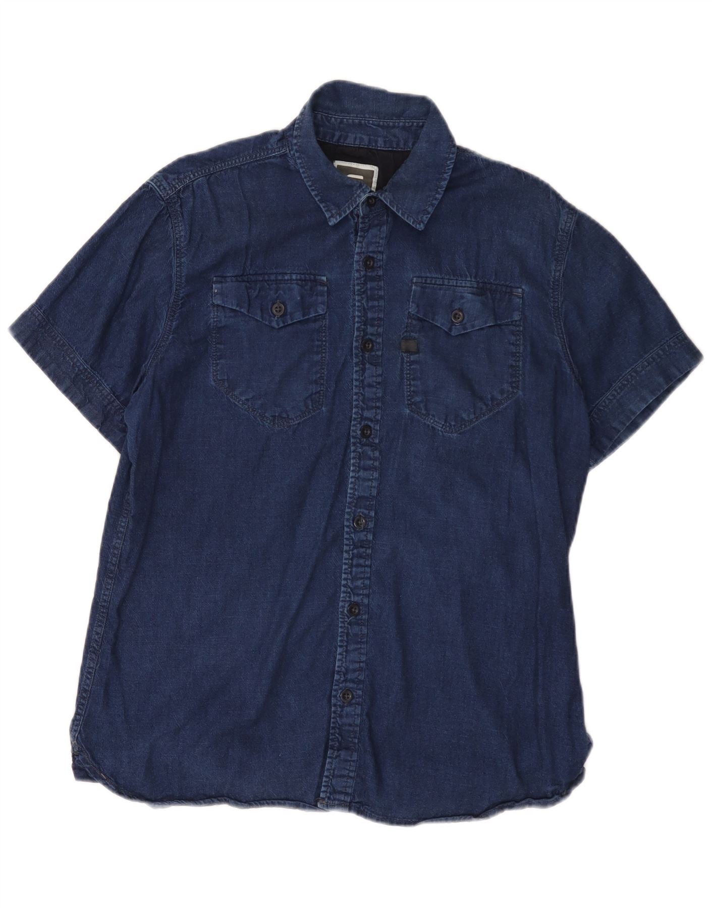G-STAR Kortærmet denimskjorte til mænd XL marineblå bomuld