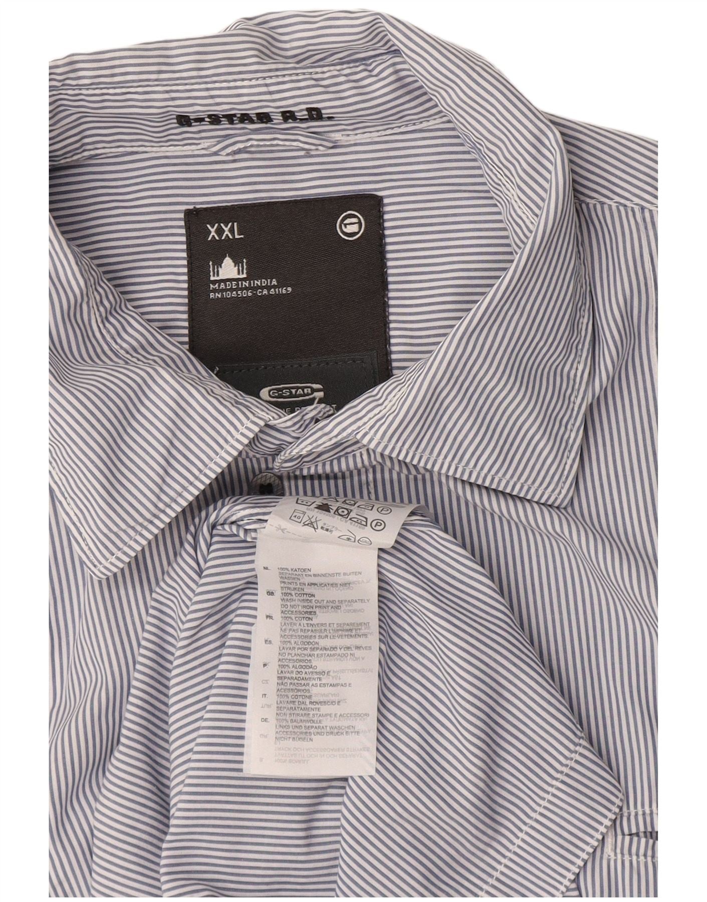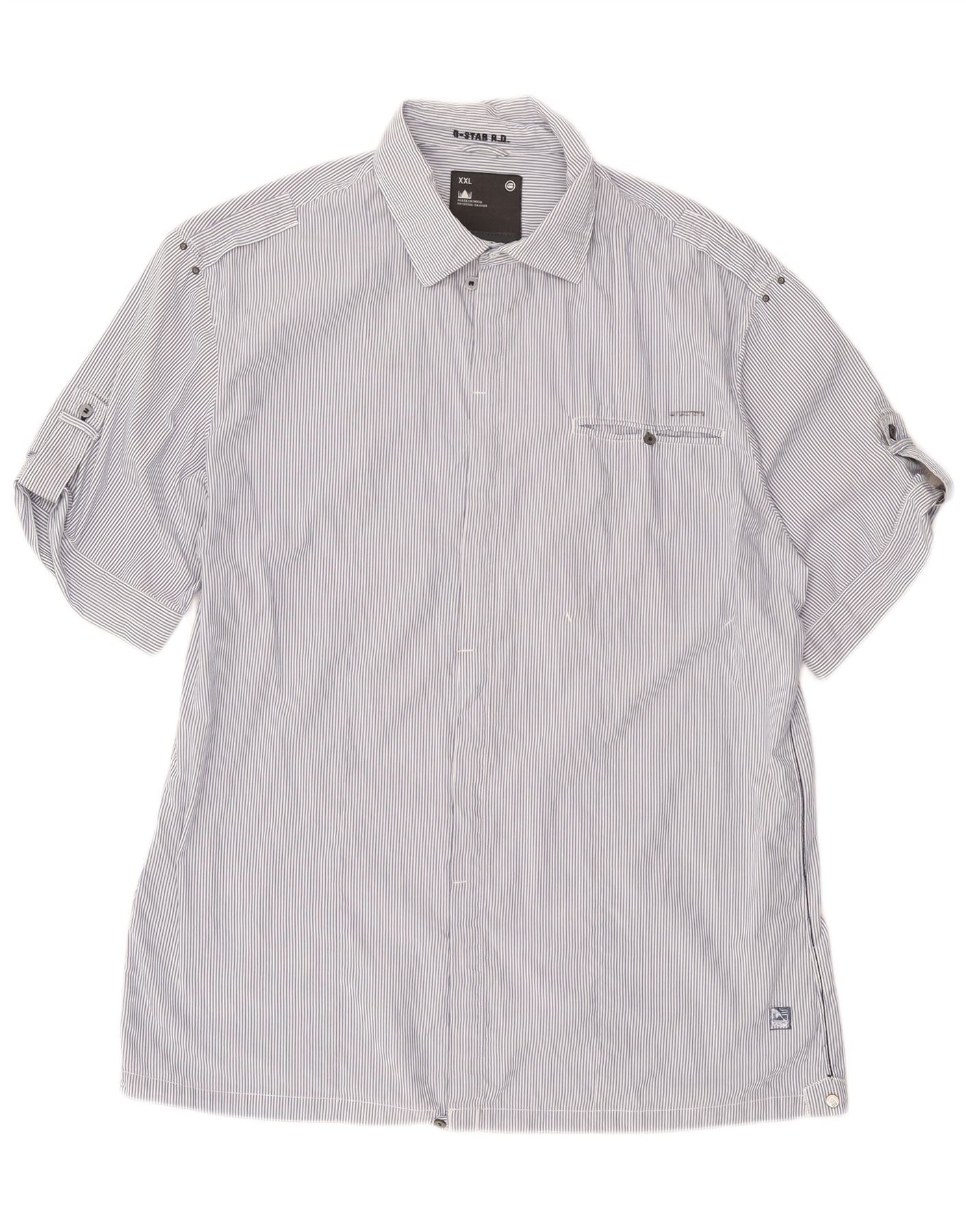 G-STAR kortærmet herreskjorte 2XL marineblå nålestribet bomuld