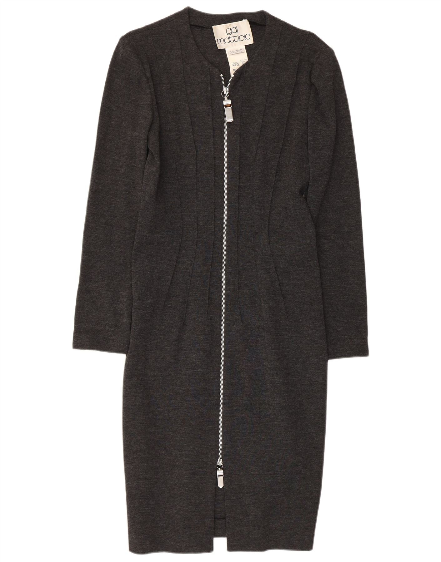 GAI MATTIOLO Dame Langærmet Bodycon Kjole UK 16 Large Grey Virgin Wool