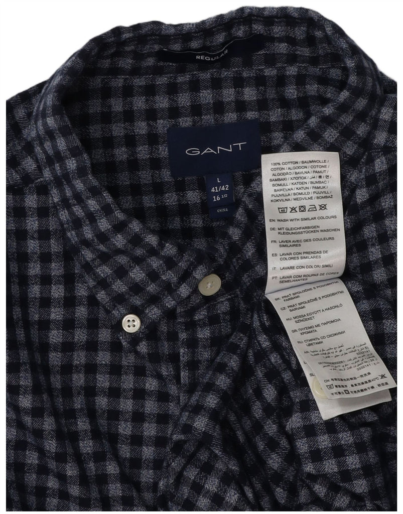 GANT Flanelskjorte til mænd str. 41/42 16 1/2 Large Navyblå Gingham