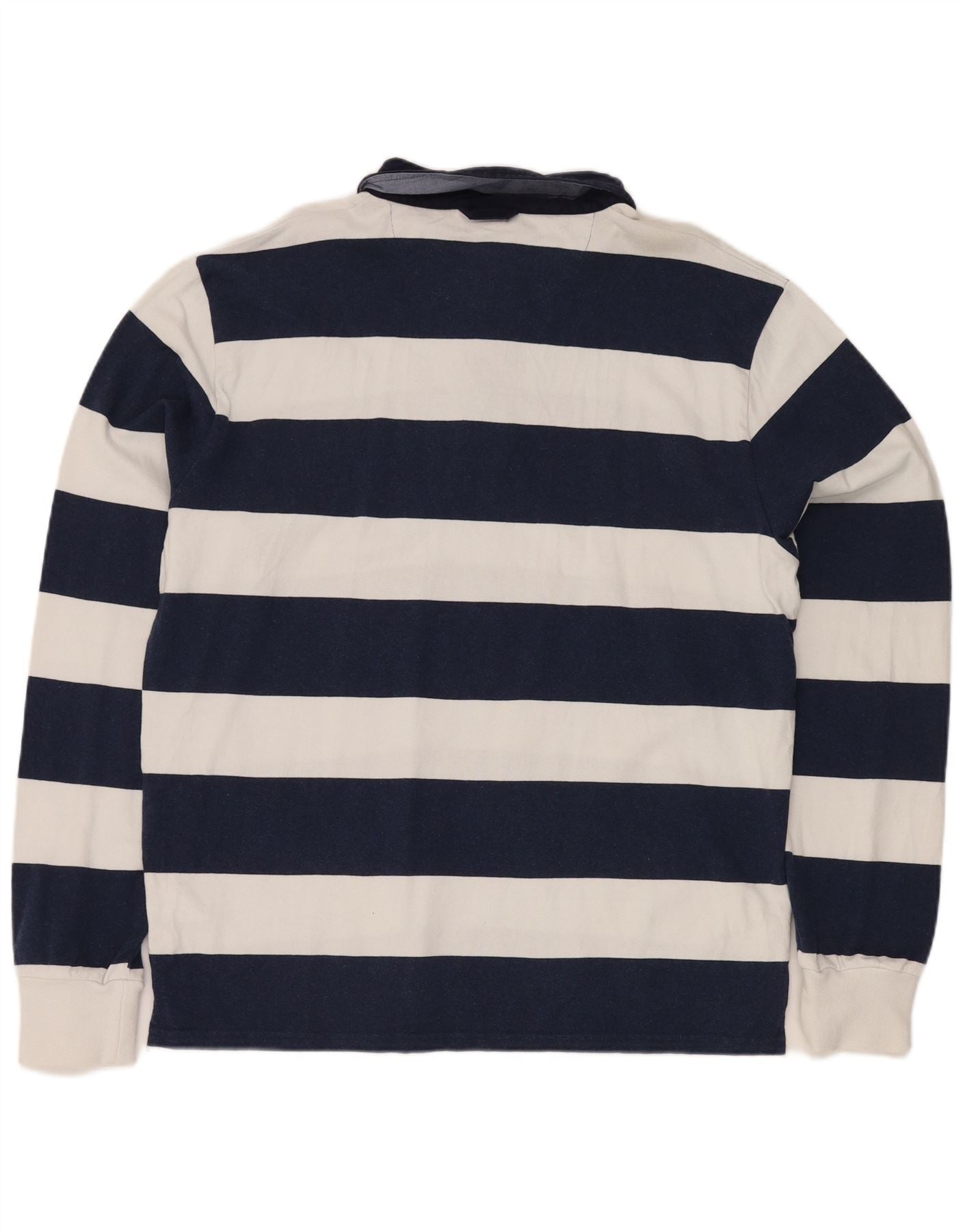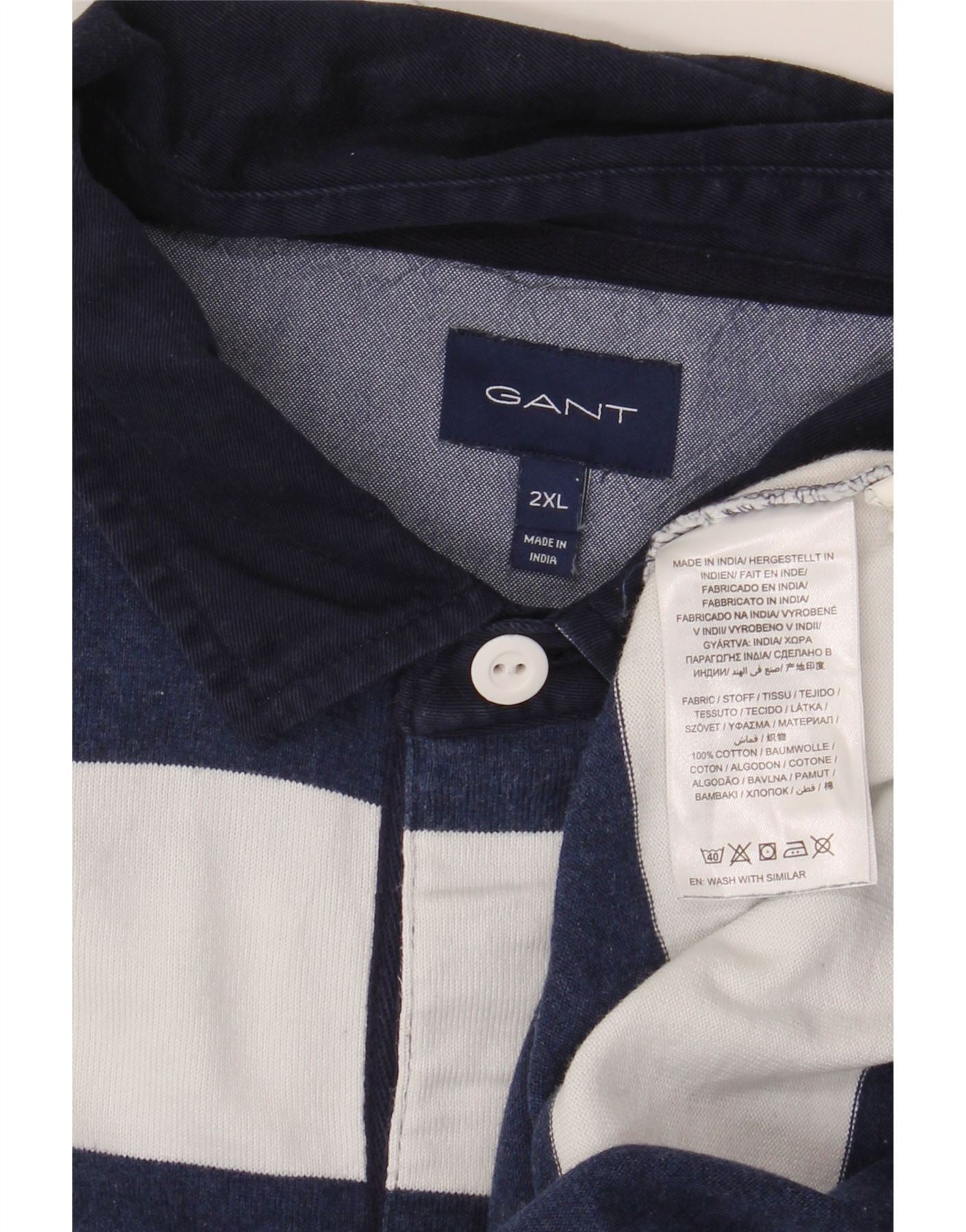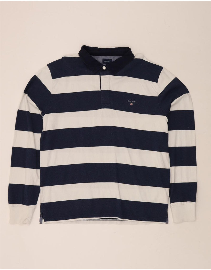 GANT Mens Long Sleeve Rugby Polo Shirt 2XL Navy Blue Striped Cotton