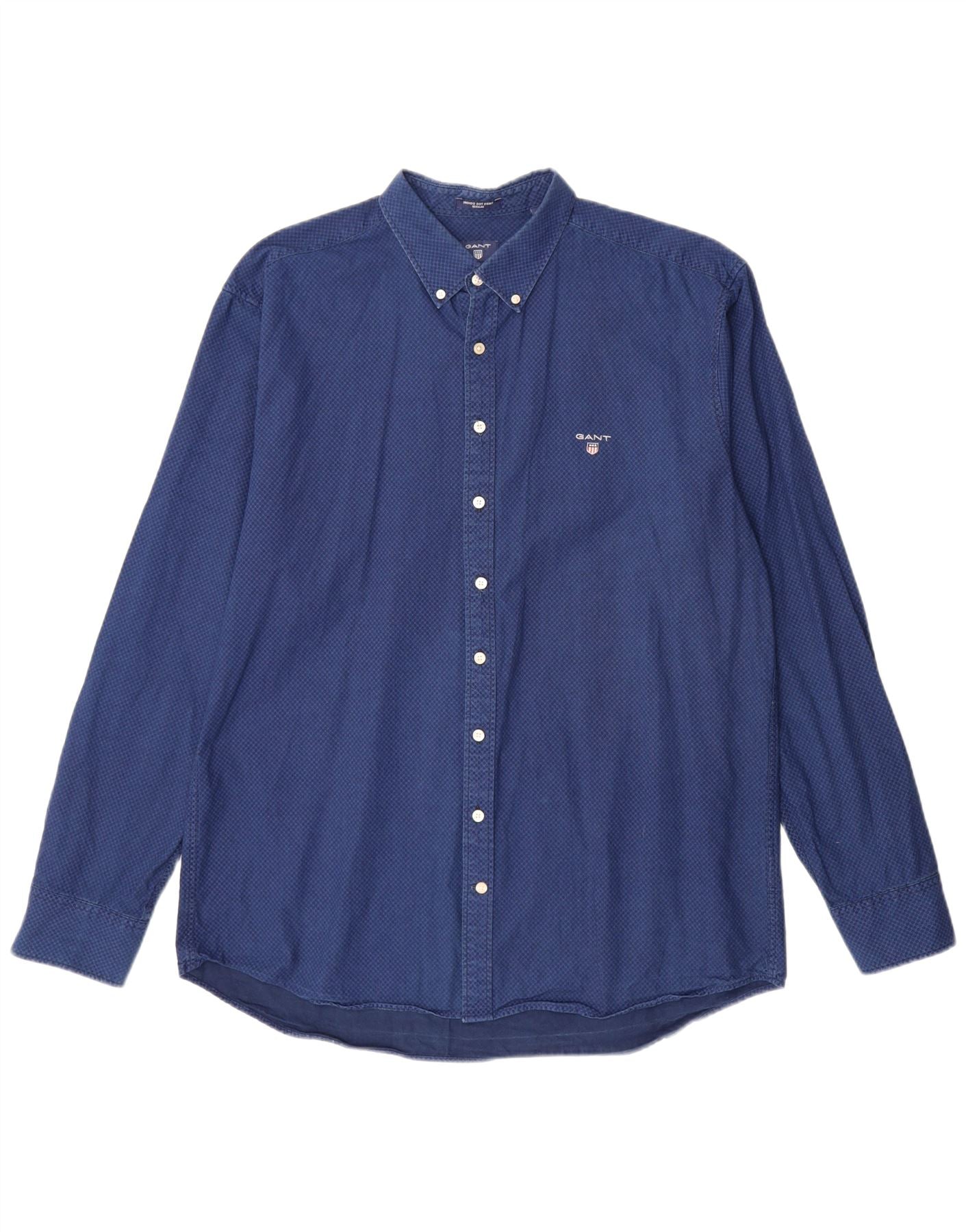 GANT Herre Regular Fit Skjorte Størrelse 45/46 18 2XL Blå Geometrisk Bomuld