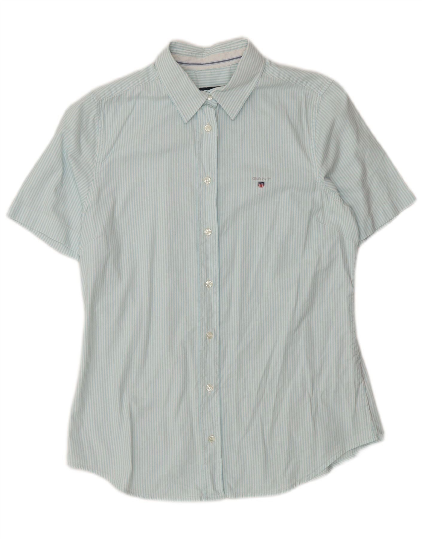 GANT kortærmet skjorte til kvinder UK 12 Mellemblå nålestribet bomuld