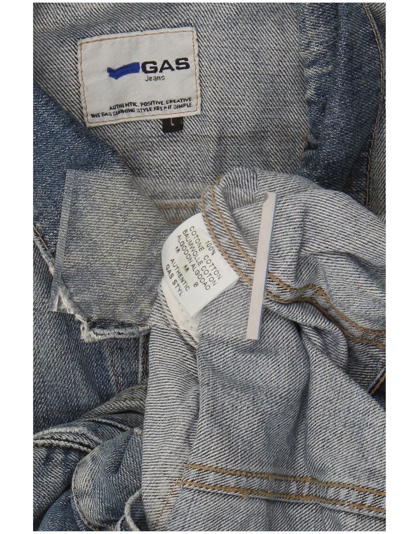 GAS Herre Acid Wash Denim Jacket UK 40 Large Blue Cotton