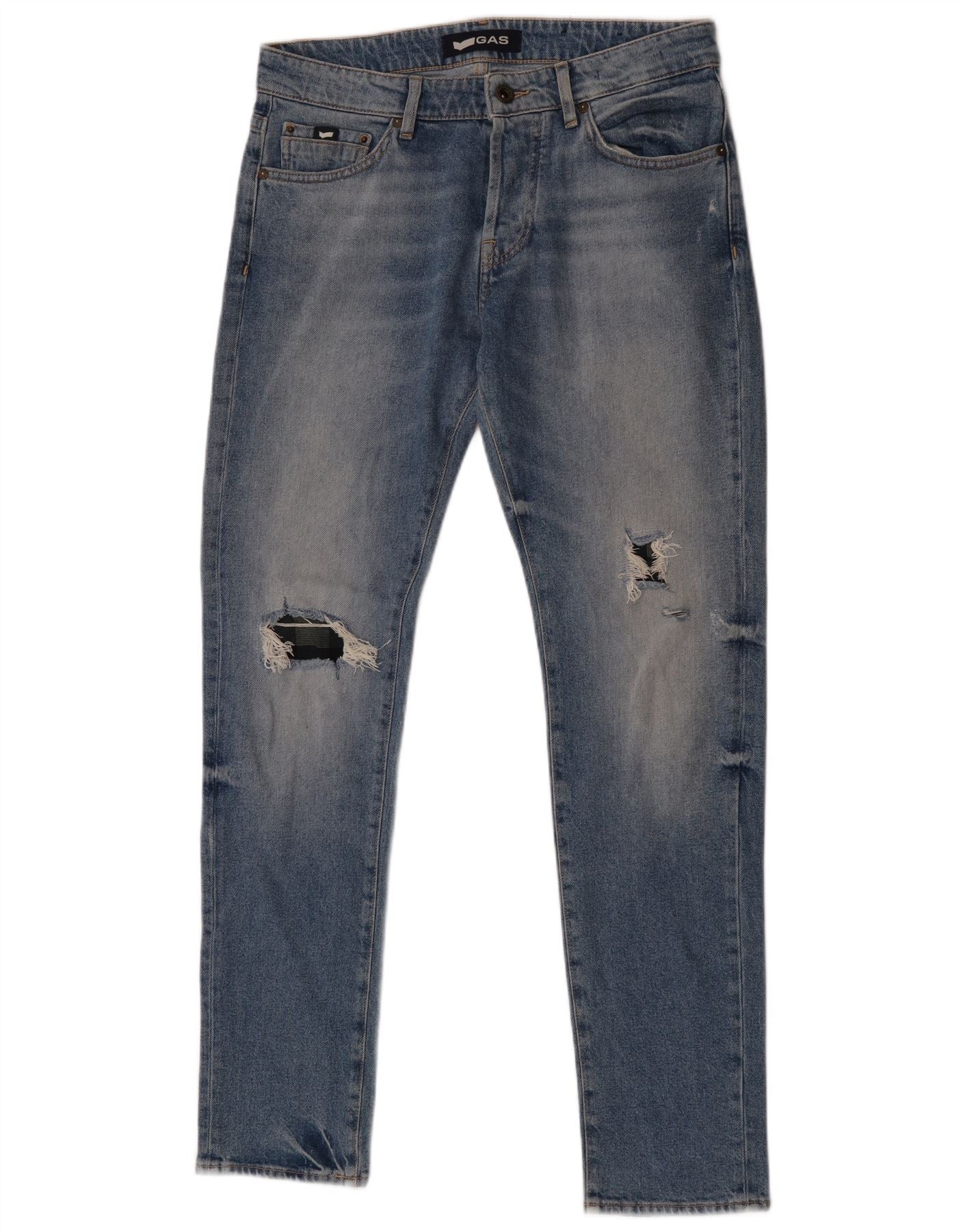 Gas Herre Norton Carrot Distressed Slim Jeans W31 L32 Blue Cotton